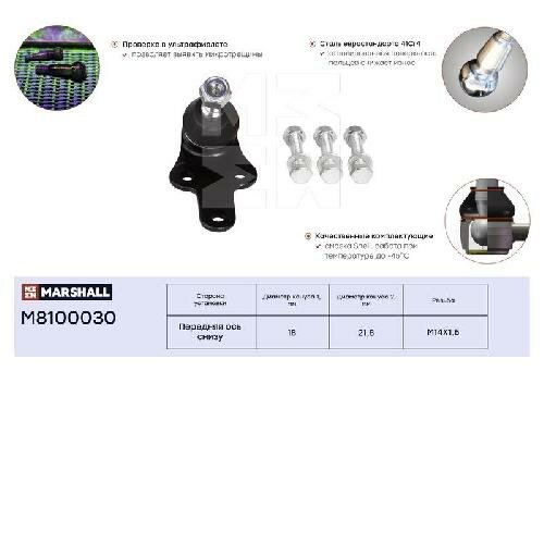 Опора шаровая MARSHALL M8100030 для Ford Focus II, Ford C-Max, Volvo C30, Volvo C70, Volvo S40, Volvo V50 // кросс-номер TRW JBJ740