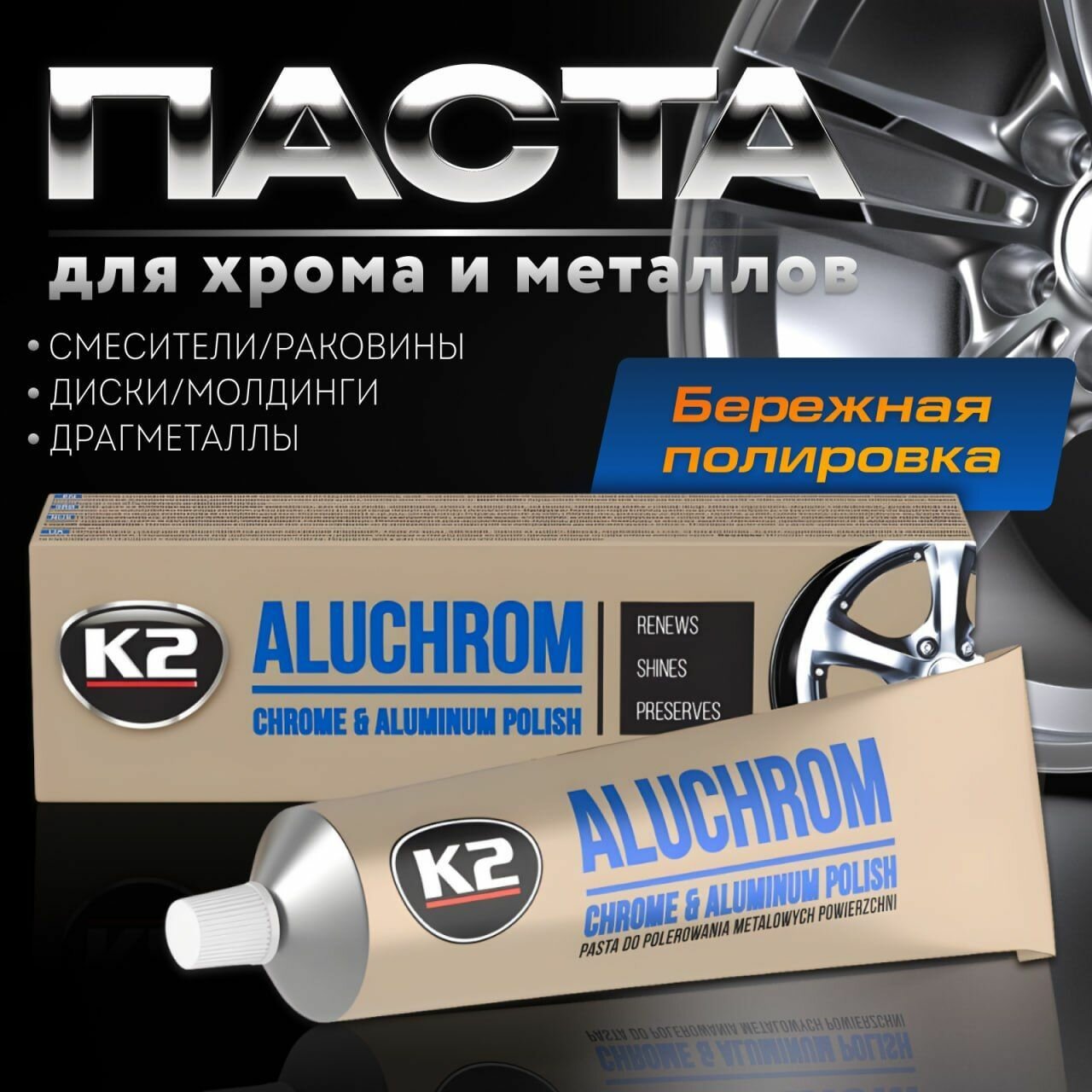 Паста полировочная для металлических поверхностей ALUCHROM K2, 120 гр. интересное: