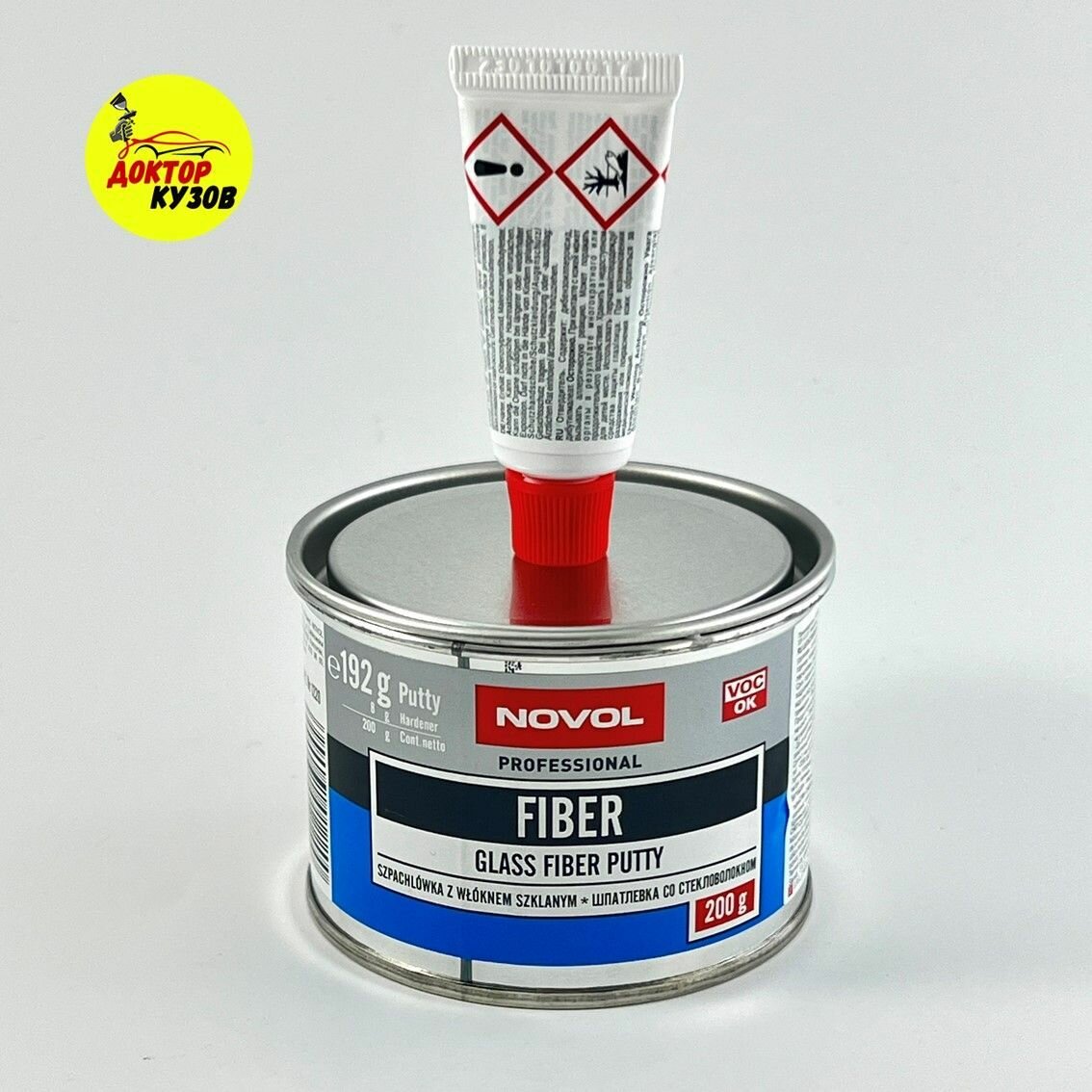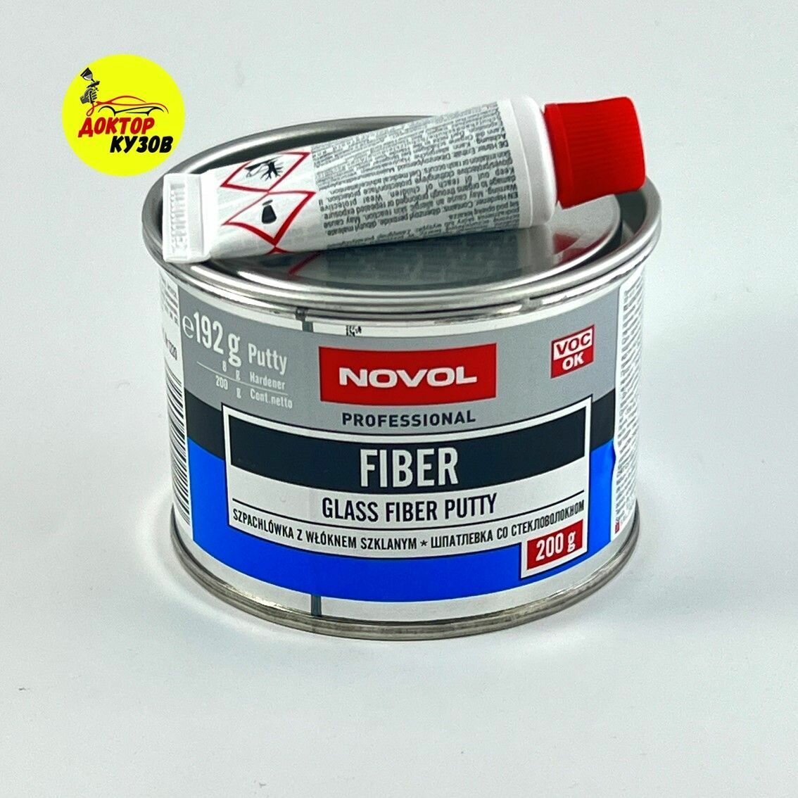 Купить Шпатлевка автомобильная / Шпатлевка автомобильная со стекловолокном 200 г NOVOL Glass Fiber Putty, 1220, оливковая + отвердитель