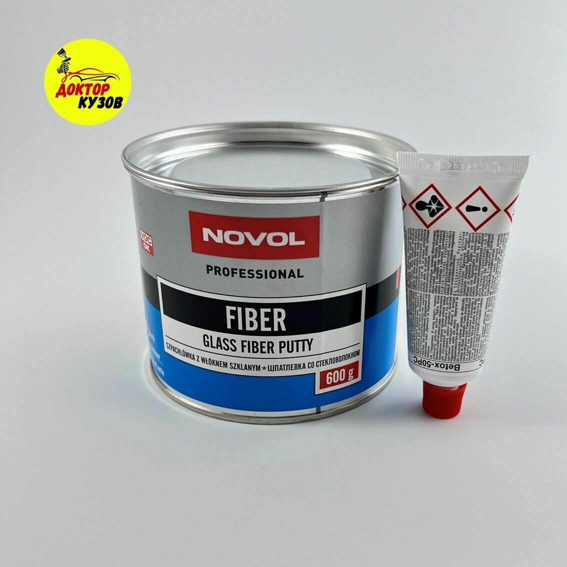 Купить Шпатлевка автомобильная со стекловолокном 600 г NOVOL Glass Fiber Putty, 1222, оливковая + отвердитель / Автошпатлевка