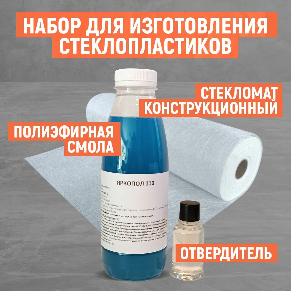 Набор для ремонта стеклопластиков. Полиэфирная смола 0.5 кг. Стекломат 300 гр/м2, 60х60 см. Ремонт авто.