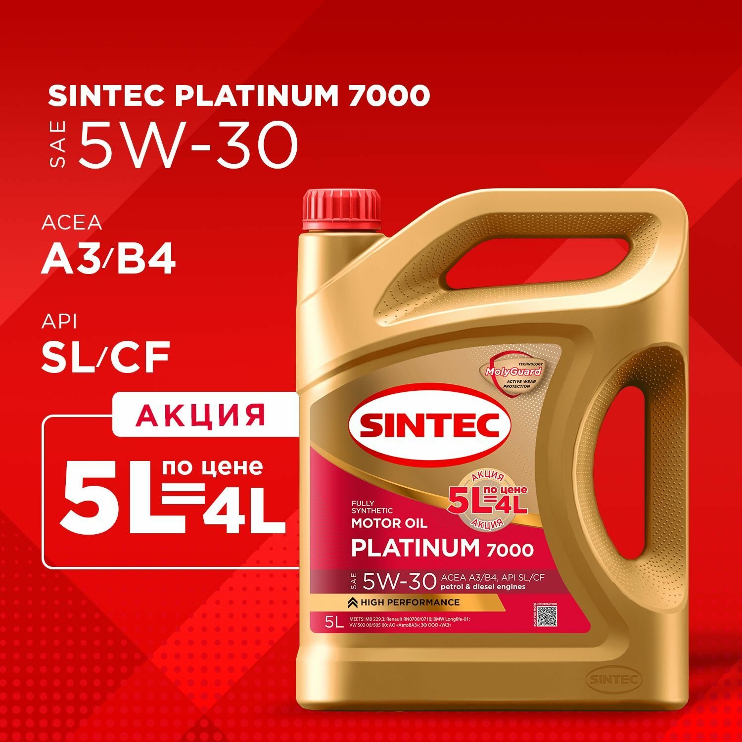 Купить масло sintec platinum 7000 5w-30 5 л синтетическое моторное