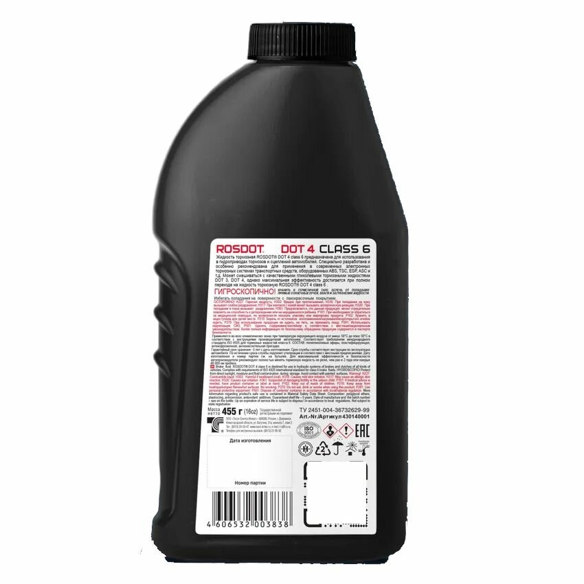Жидкость тормозная DOT 4 CLASS 6 (455г) ROSDOT 430140001