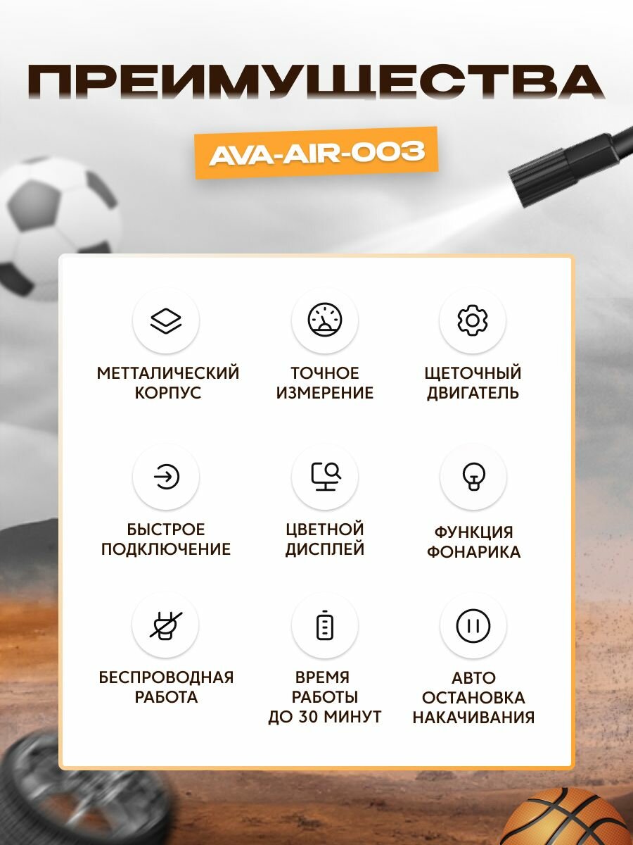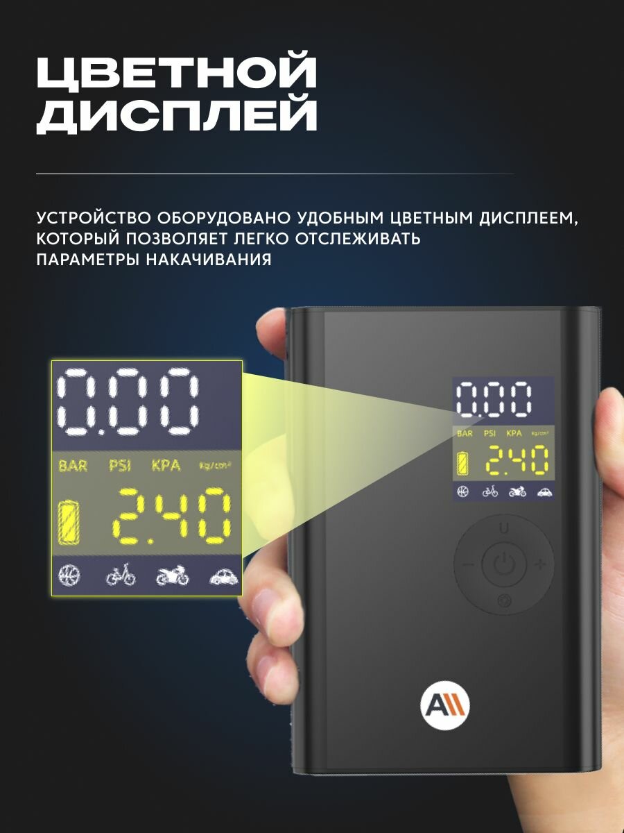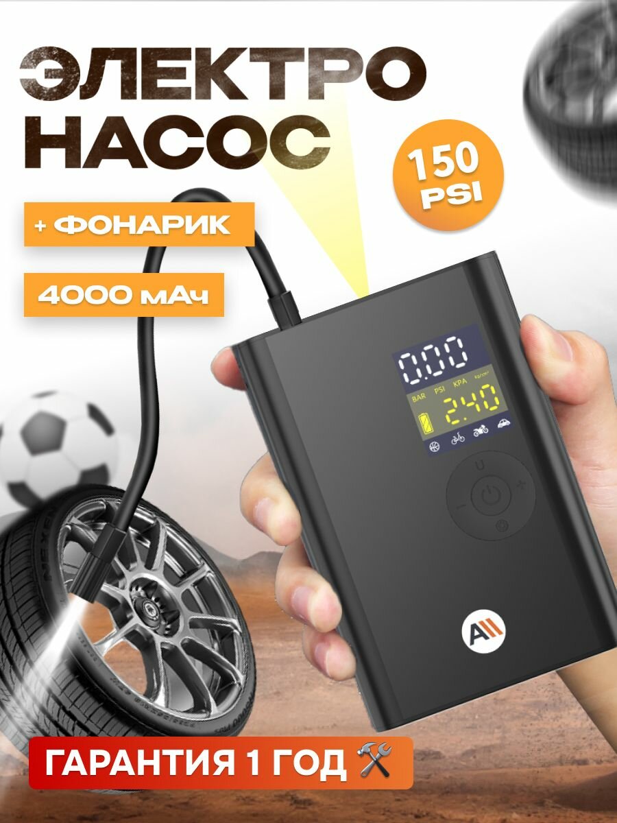 Электронасос для шин, мячей , 150 PSI, дисплей , 4000 мАч c функцией фонарика (AVA-AIR-003) черный интересное: