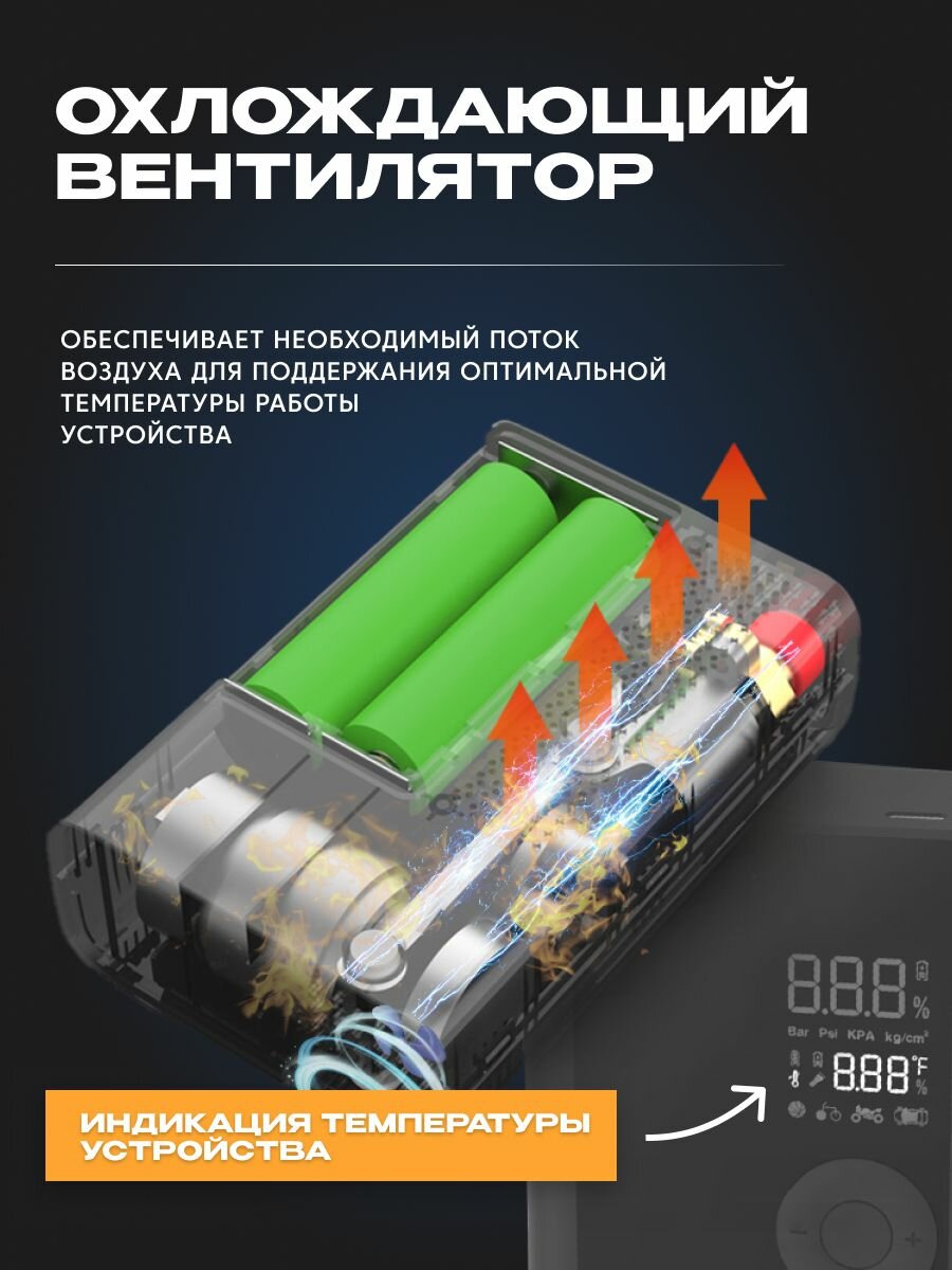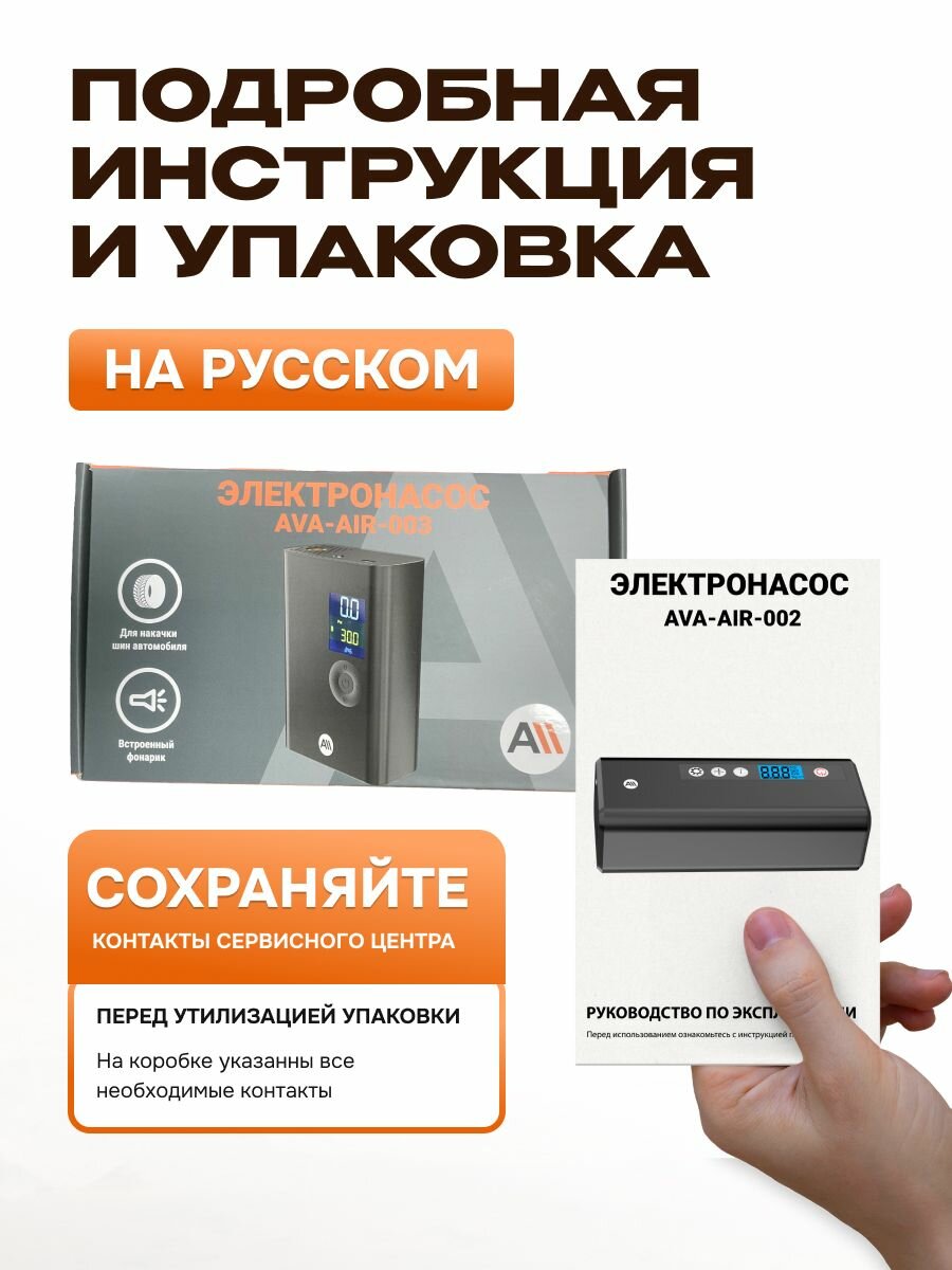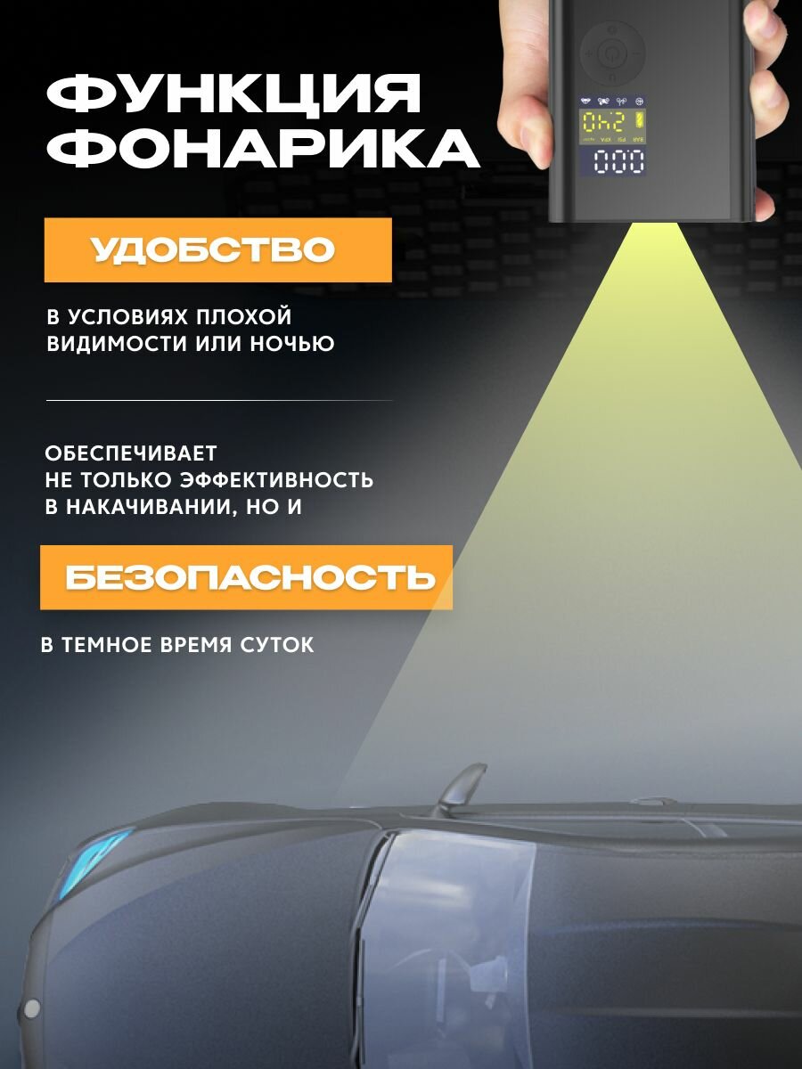 Электронасос для шин, мячей , 150 PSI, дисплей , 4000 мАч c функцией фонарика (AVA-AIR-003) черный интересное: