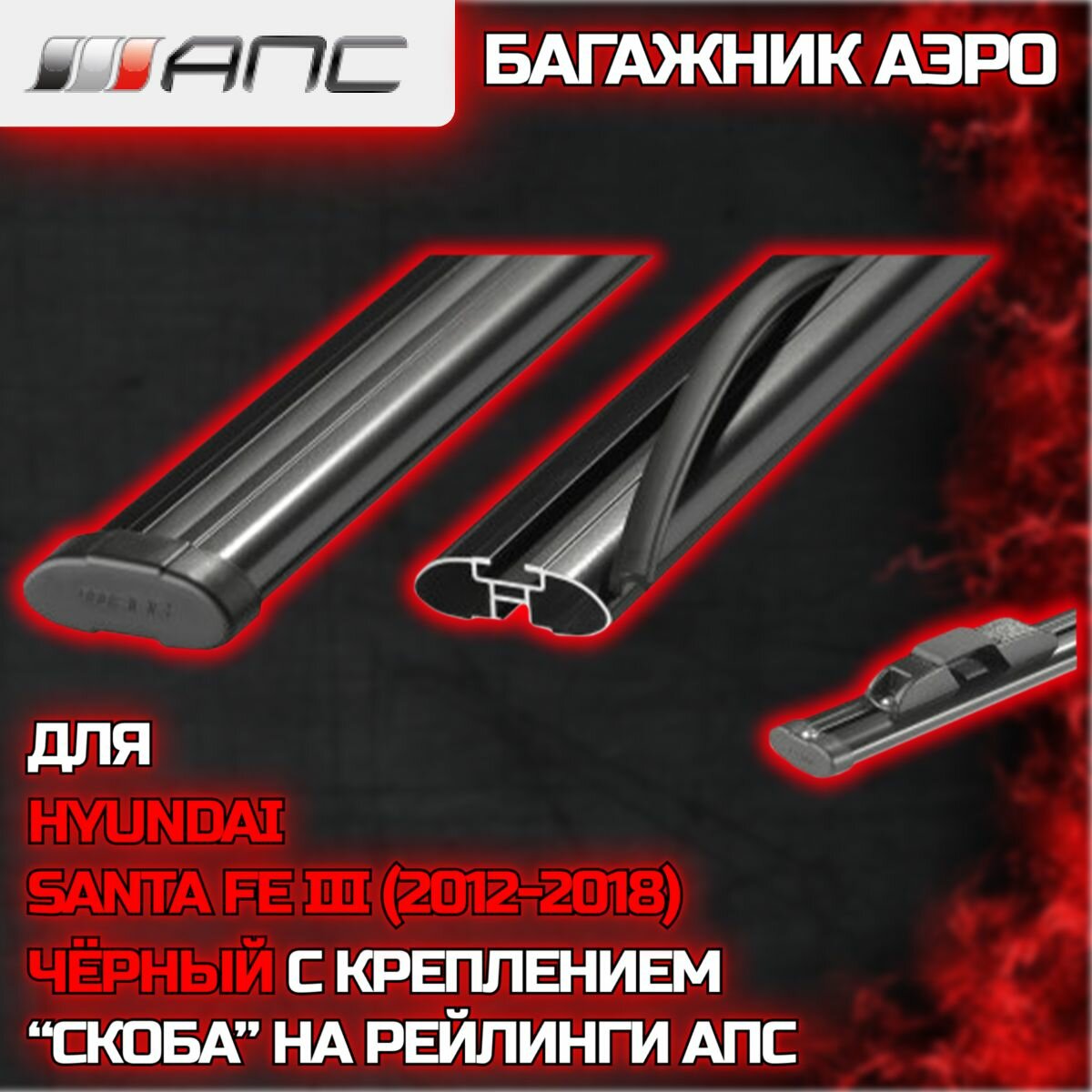 Багажник АПС аэро на рейлинги АПС для Hyundai Santa Fe III (2012-2018) (Хендай Санта Фе), 130 см, черный (комплект)