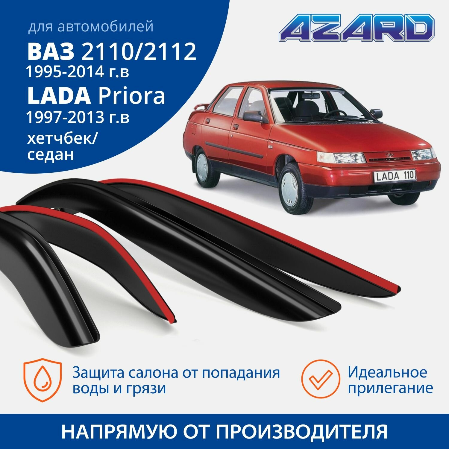 Купить Дефлекторы окон Azard для Приора 2007-2013, Lada / ВАЗ 2110 / 2112 (1995-2014) седан, хетчбэк накладные 4 шт.