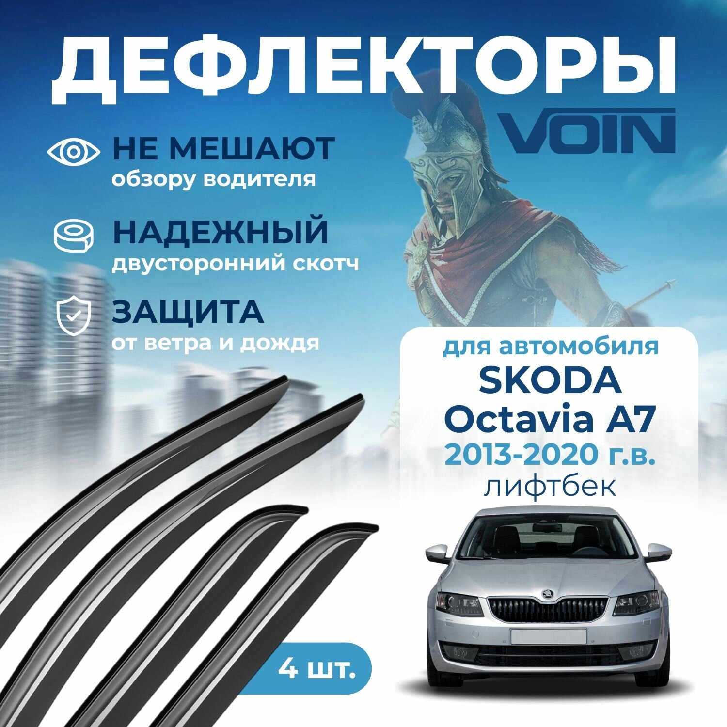 Дефлекторы окон Voin на автомобиль Skoda Octavia A7 2013-2020 /лифтбек/накладные 4 шт интересное:
