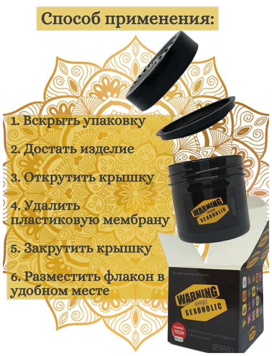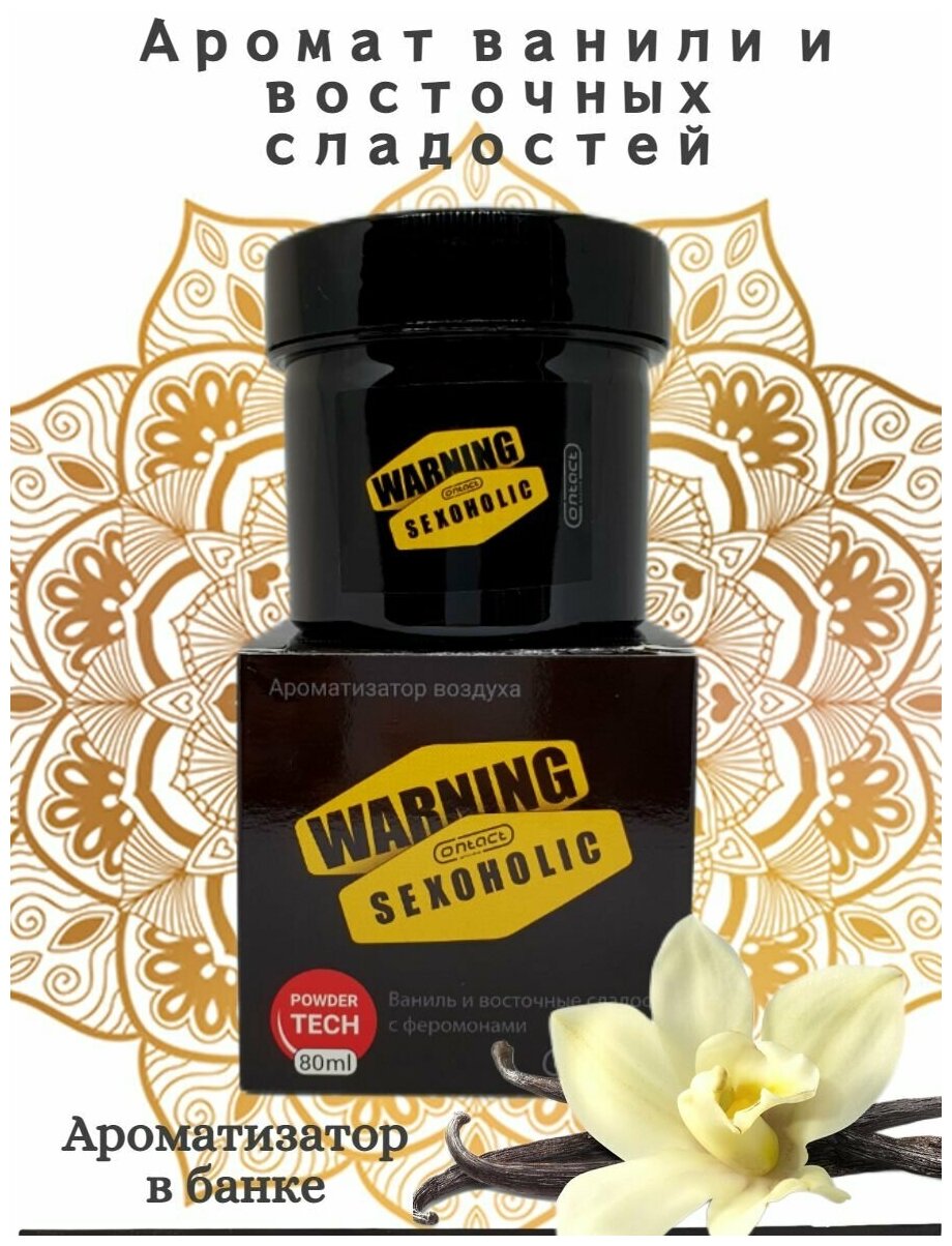 Ароматизатор для автомобиля гелевый CONTACT WARNING SEXOHOLIC автопарфюм с ароматом "Ваниль и восточные сладости" с феромонами, гелевая банка 80 мл. интересное: