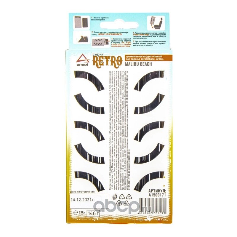 Ароматизатор под сиденье, гелевый Retro Malibu Beach 125г ARNEZI A1509171 - 1шт.