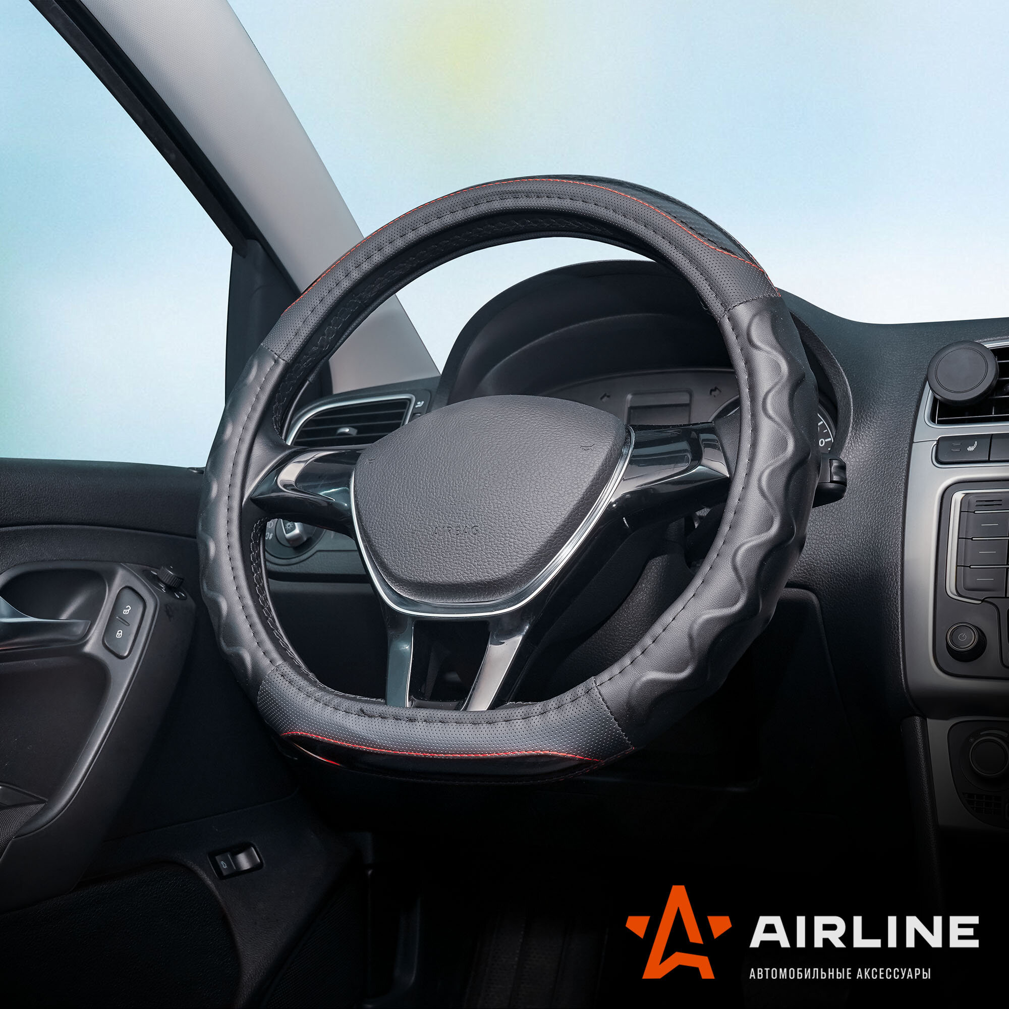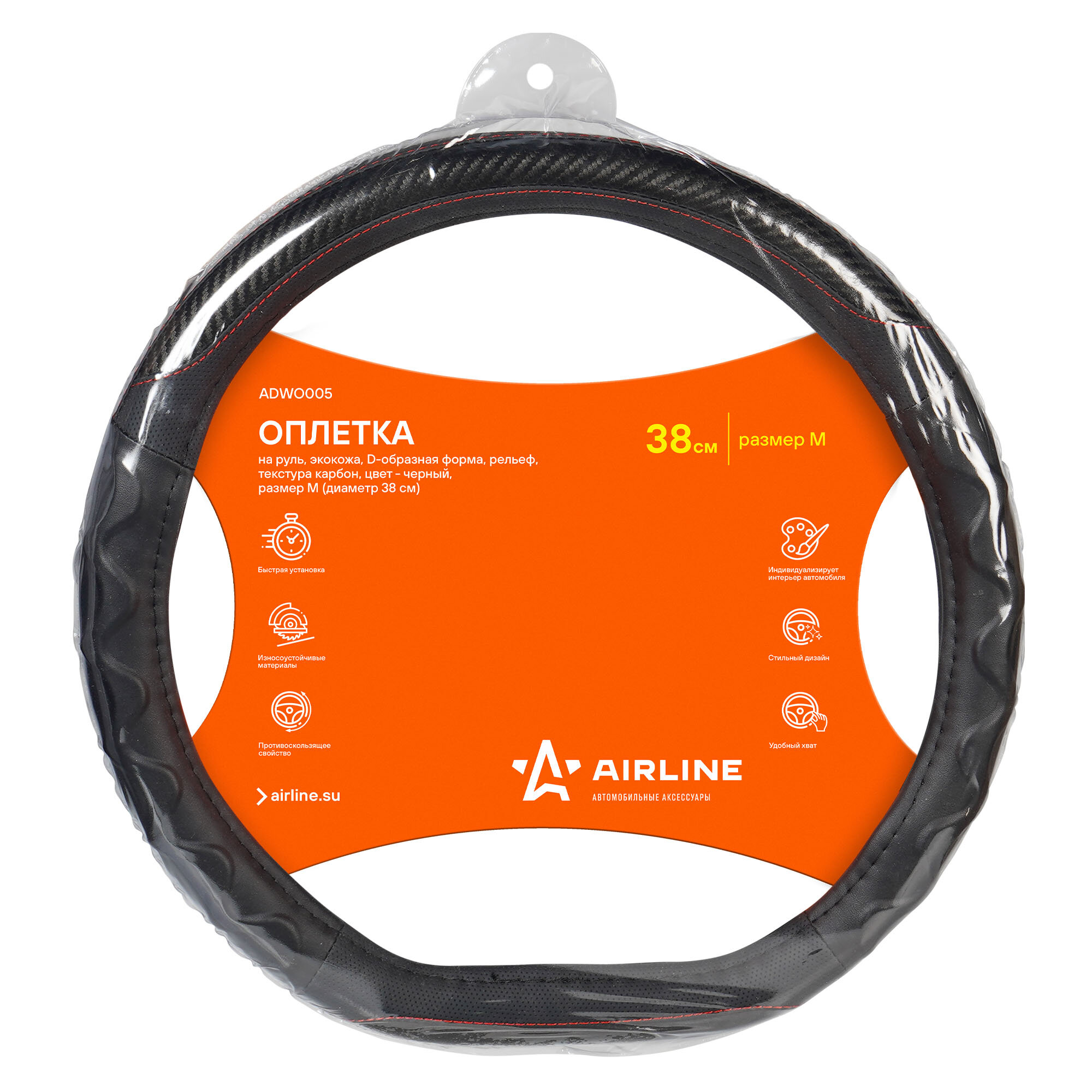Оплетка на руль, экокожа, D-образная форма, рельеф, текстура карбон, черная, 38 см/M ADWO005 AIRLINE интересное: