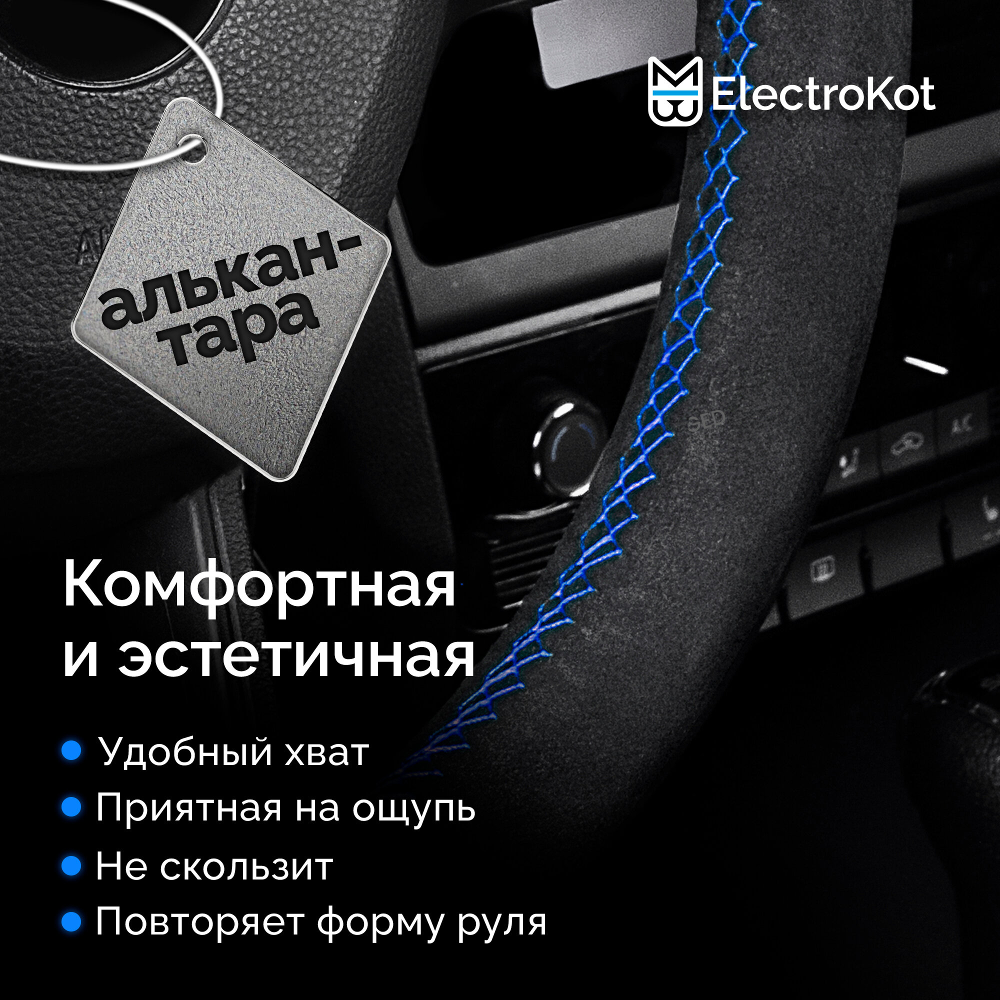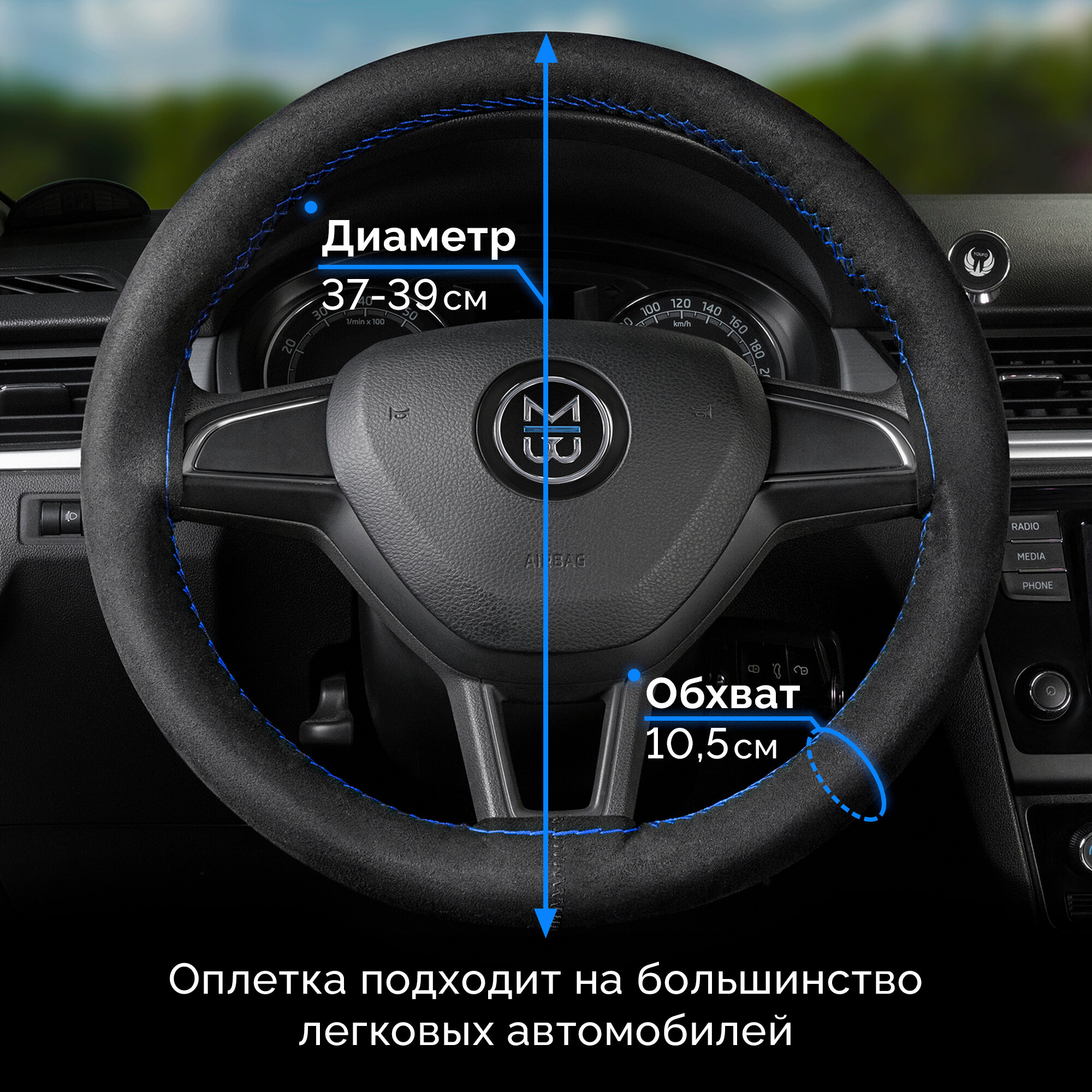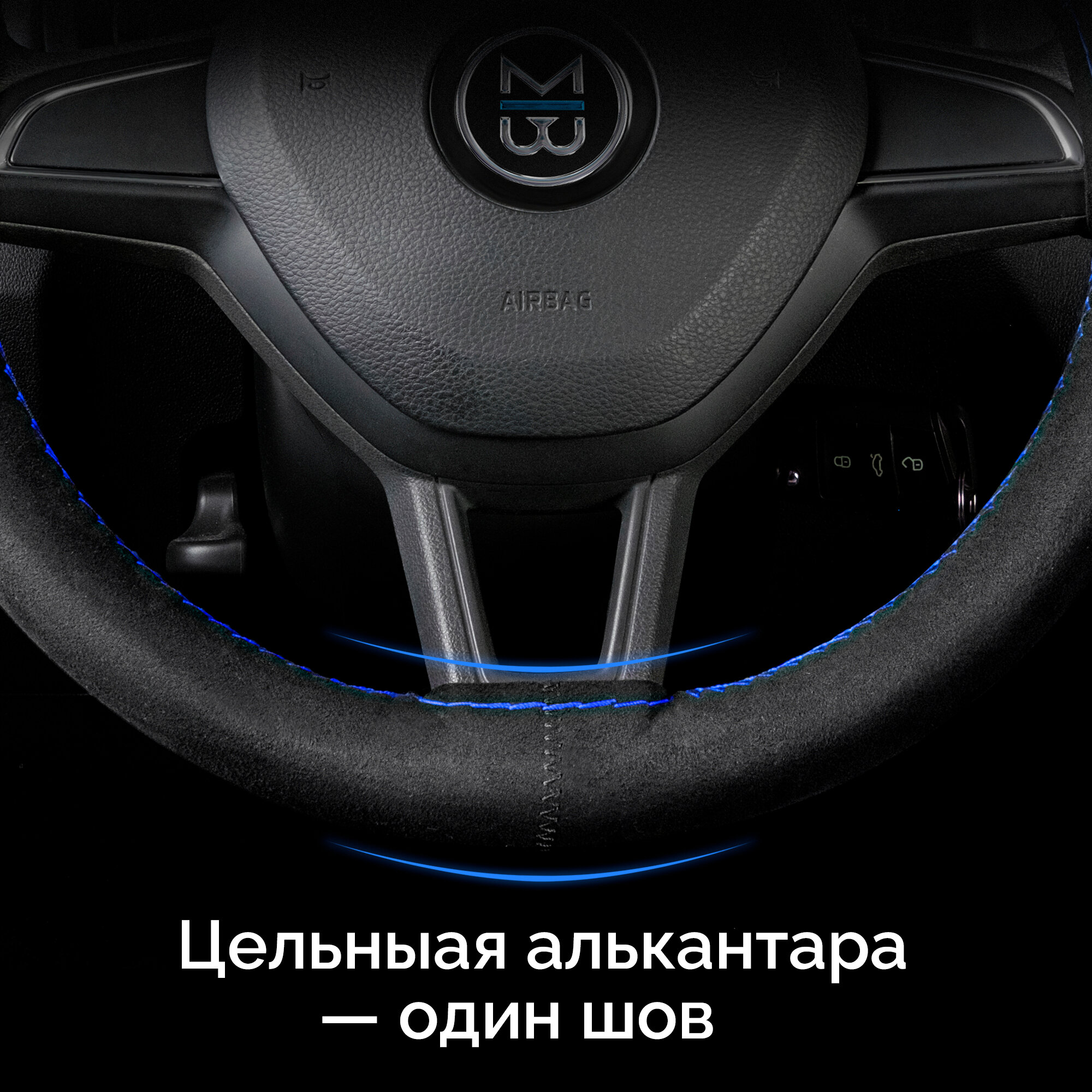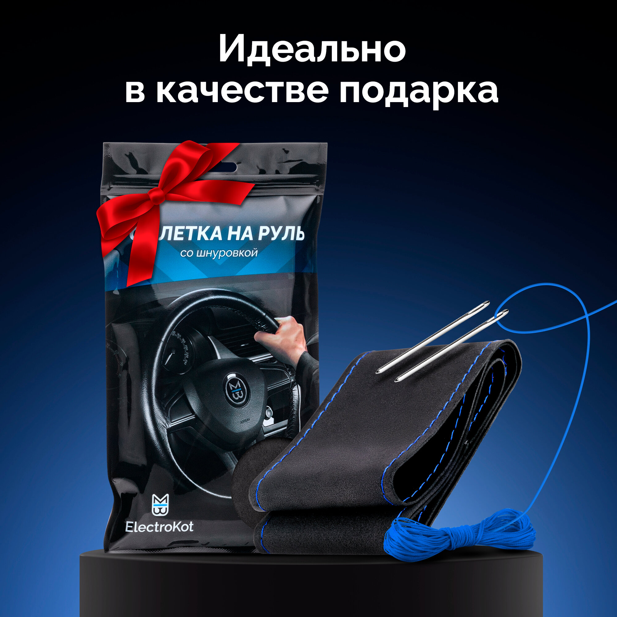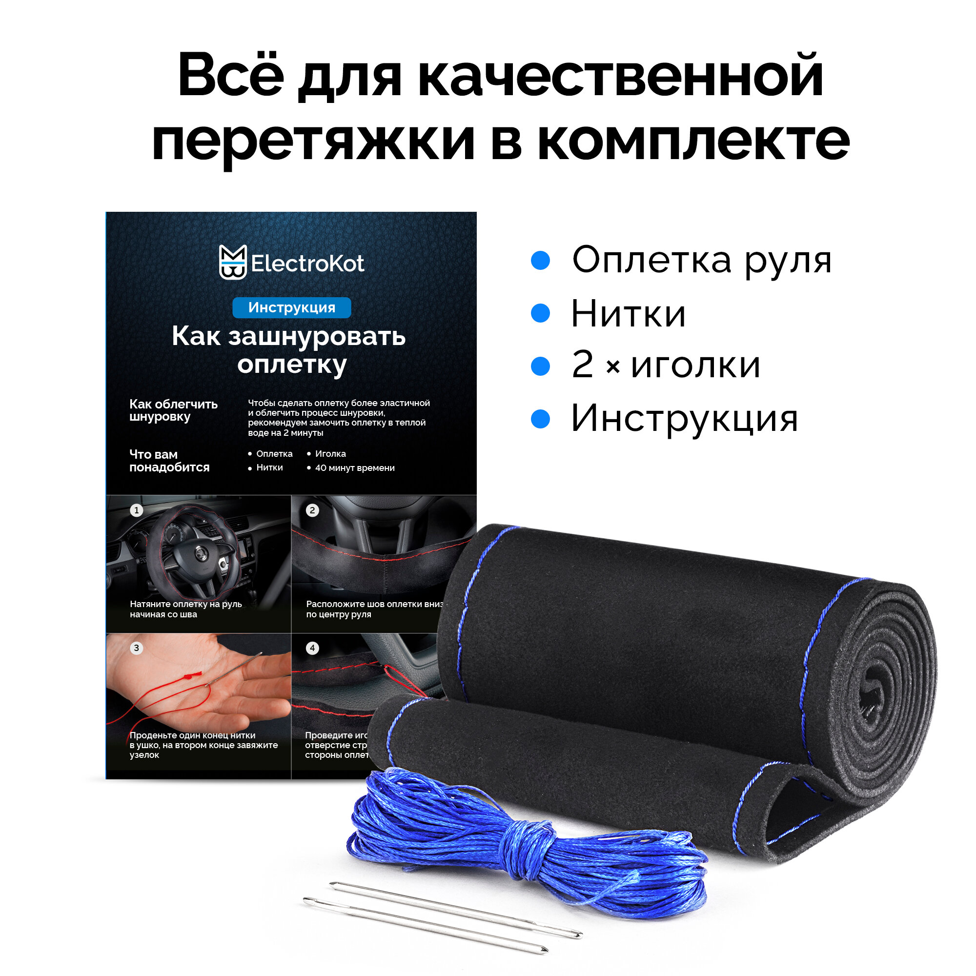 Оплетка на руль из алькантары со шнуровкой черная с синей нитью интересное: