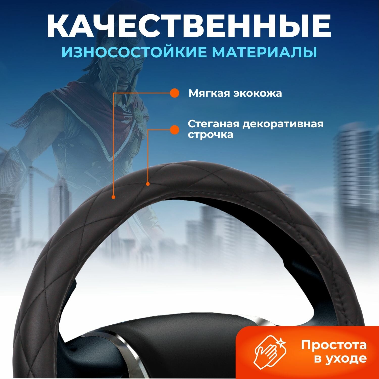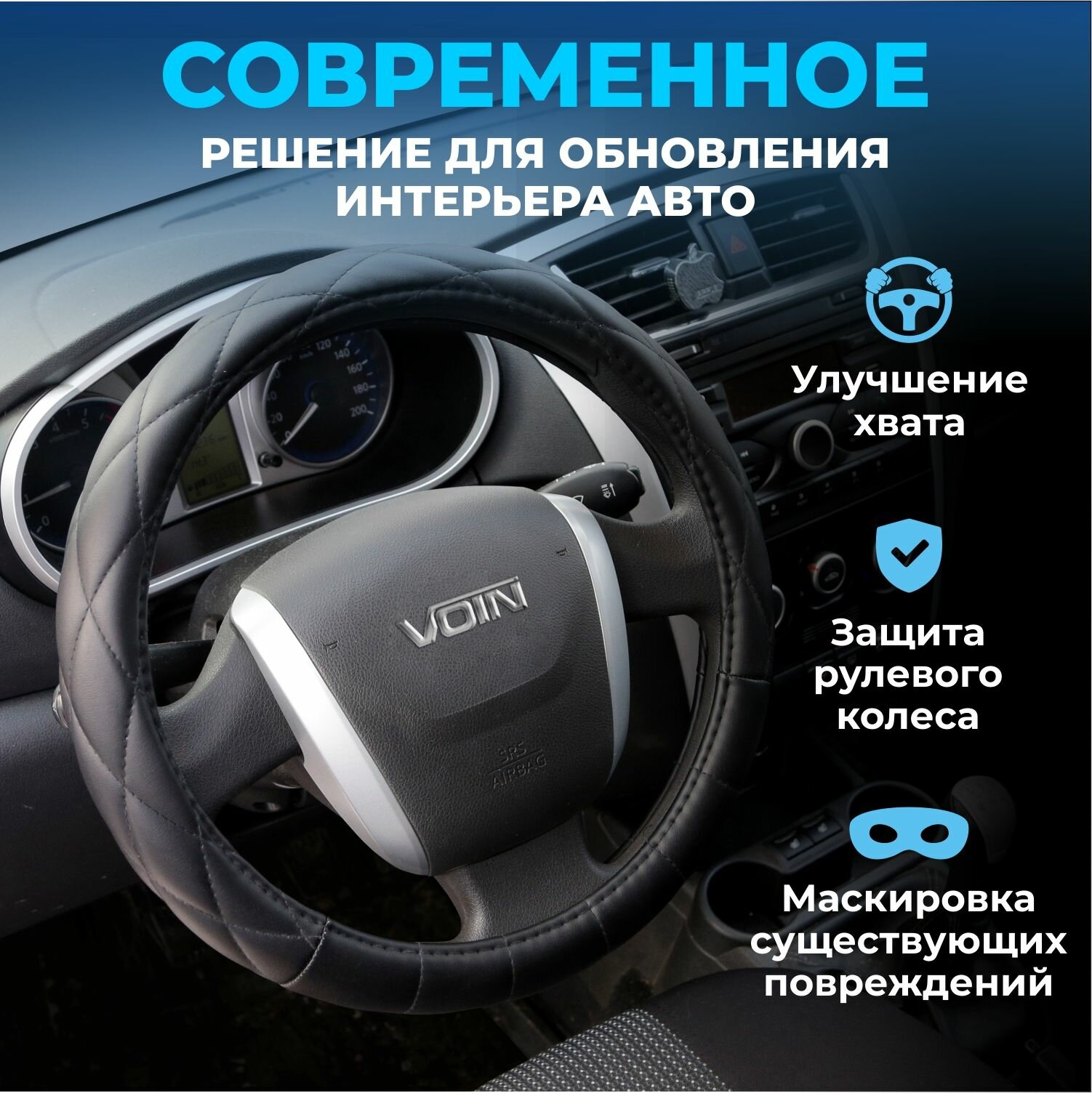 Оплетка на руль VOIN ROMB экокожа, М, черный интересное: