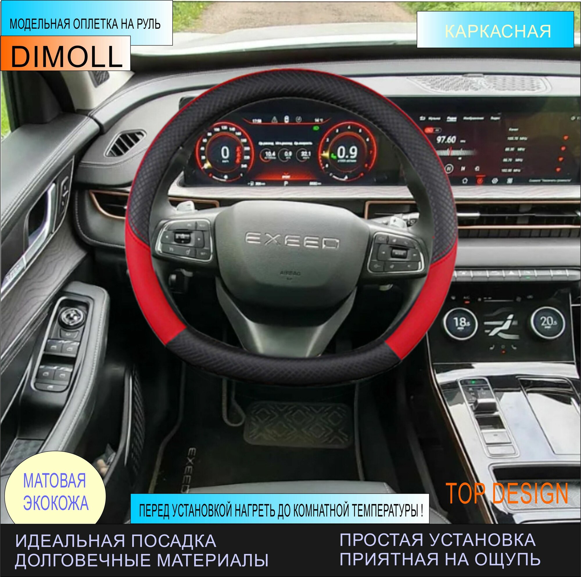 СохранитьОплетка (чехол) на D образный руль, скошенный снизу каркасная EXEED LX 2019 - н.в. экокожа, черная, красная вставка интересное:
