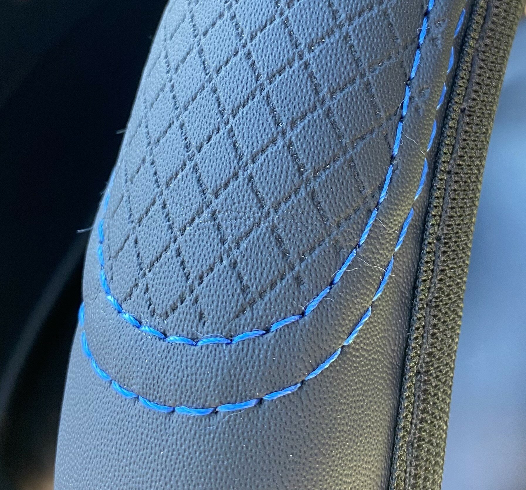 СохранитьОплетка на руль из искусственной кожи черная/синяя размер М 37-39см интересное: