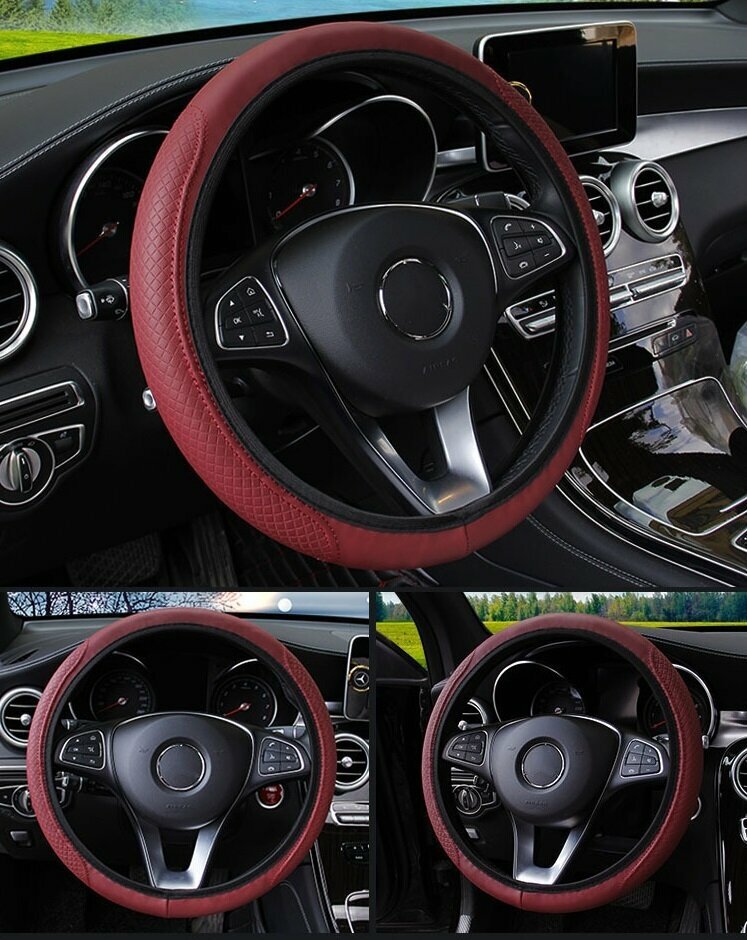 Купить Оплетка на руль из искусственной кожи бордовая размер М 37-39см