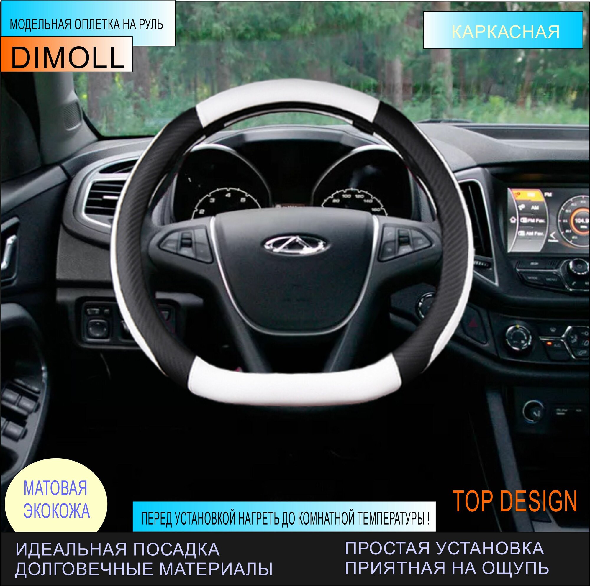Купить Оплетка (чехол) на D образный руль, скошенный снизу каркасная Chery Tiggo 7 Pro Max 2022 - н.в экокожа, черная, белая вставка