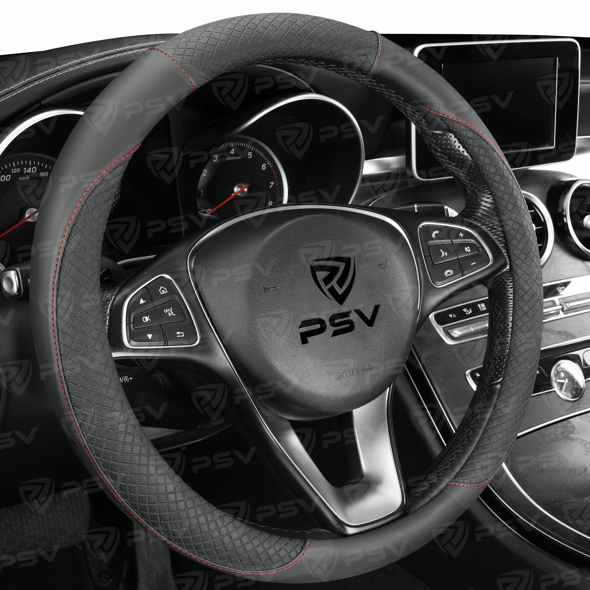 Купить Оплетка чехол на руль PSV GREAT (Черный, строчка красная) M 37-39 см, экокожа, 136826
