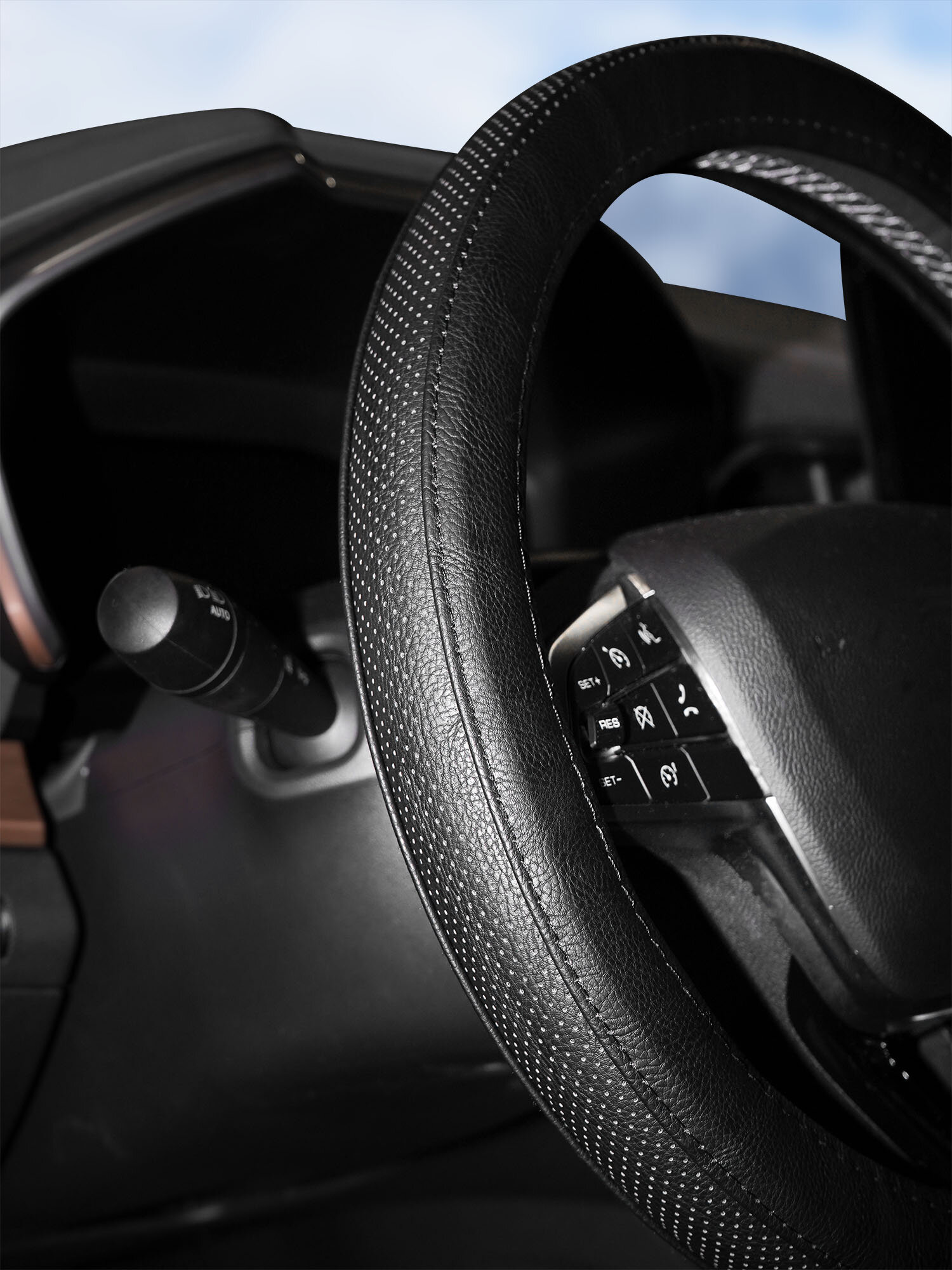 Оплетка на руль комбинированная, гладкая/перфор. кожа, черная, 37-39 см/М интересное: