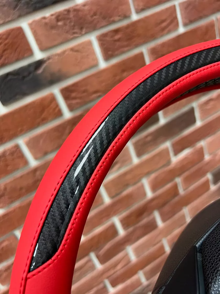 Оплетка руля Автомодель, универсальная, эко-кожа, красная, 37-39 см