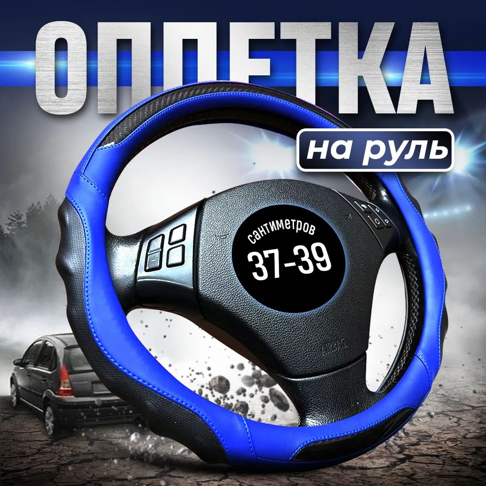 Оплетка на руль Автомодель, 37-39 см, эко-кожа, синяя