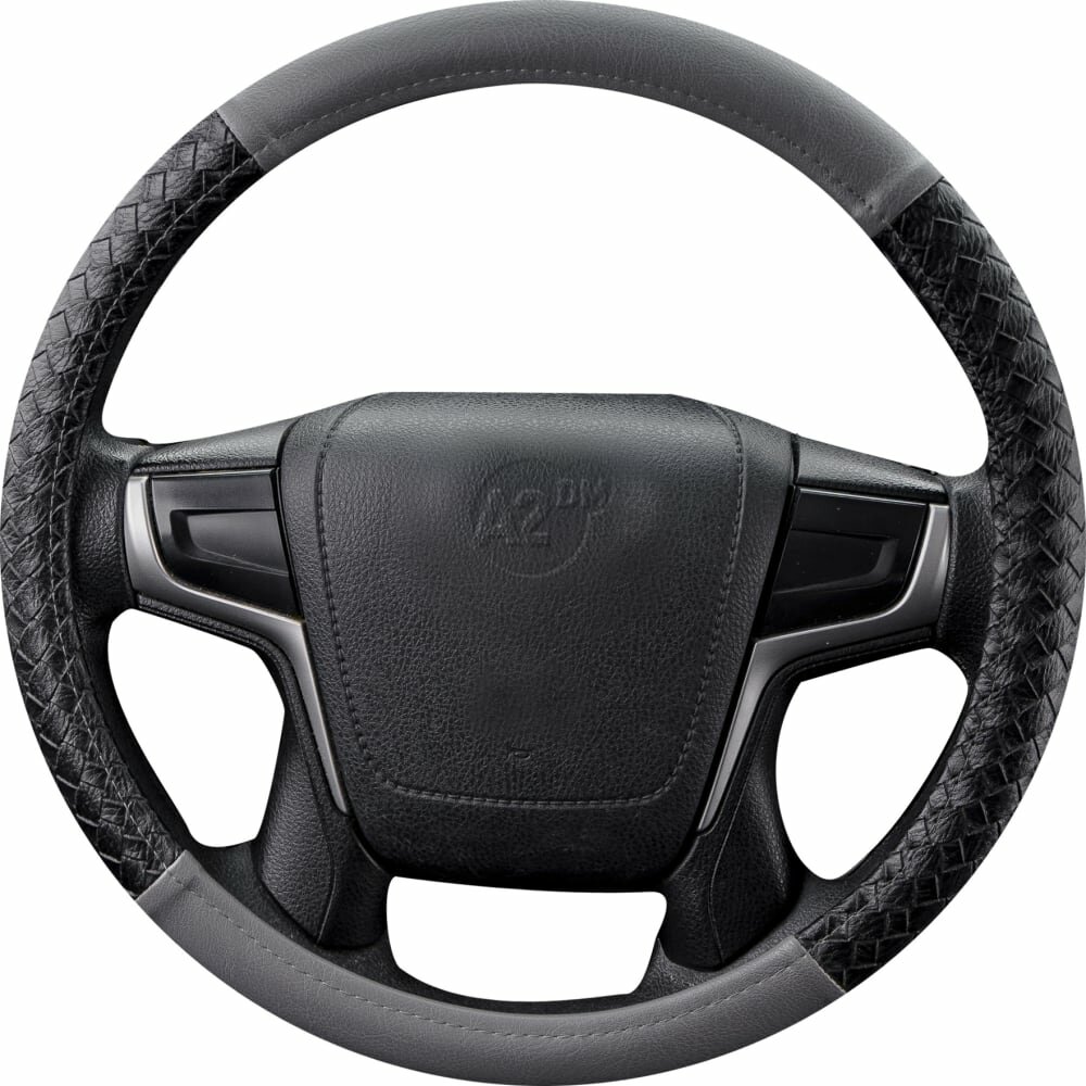 Оплетка на руль 37-39, A2DM из экокожи, косичка черная / гладкая серая