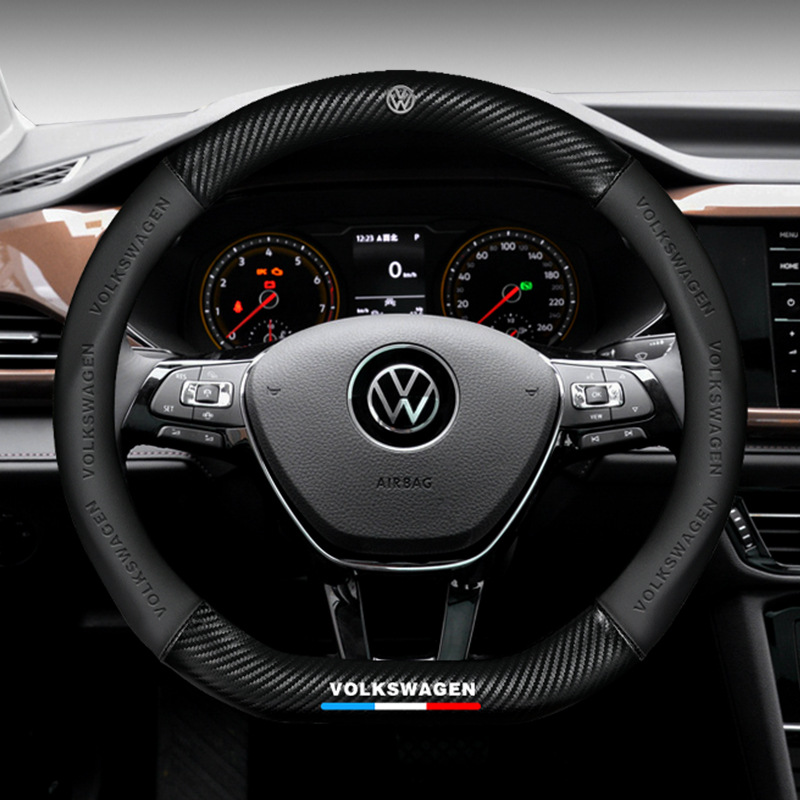 Спортивная оплетка-чехол на руль MyPads для автомобиля Volkswagen Polo, Jetta, Golf, Passat (форма D - размер М) диаметр 37-38 см интересное: