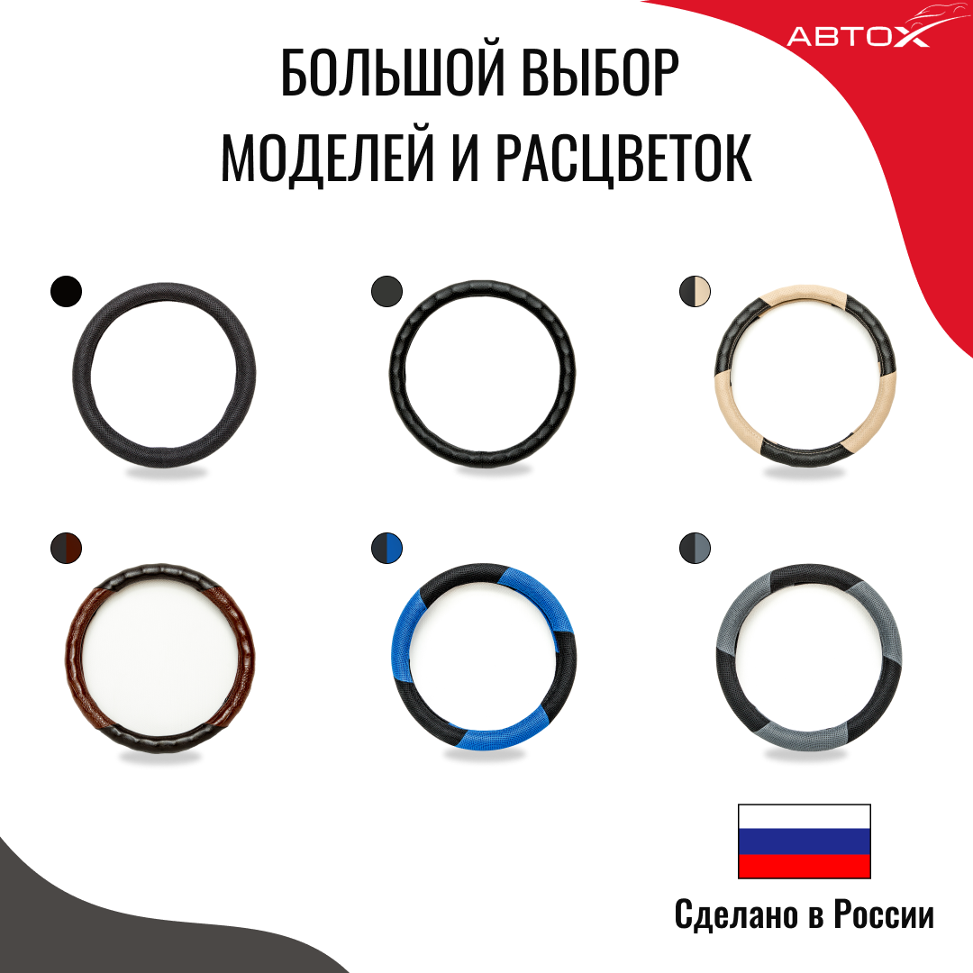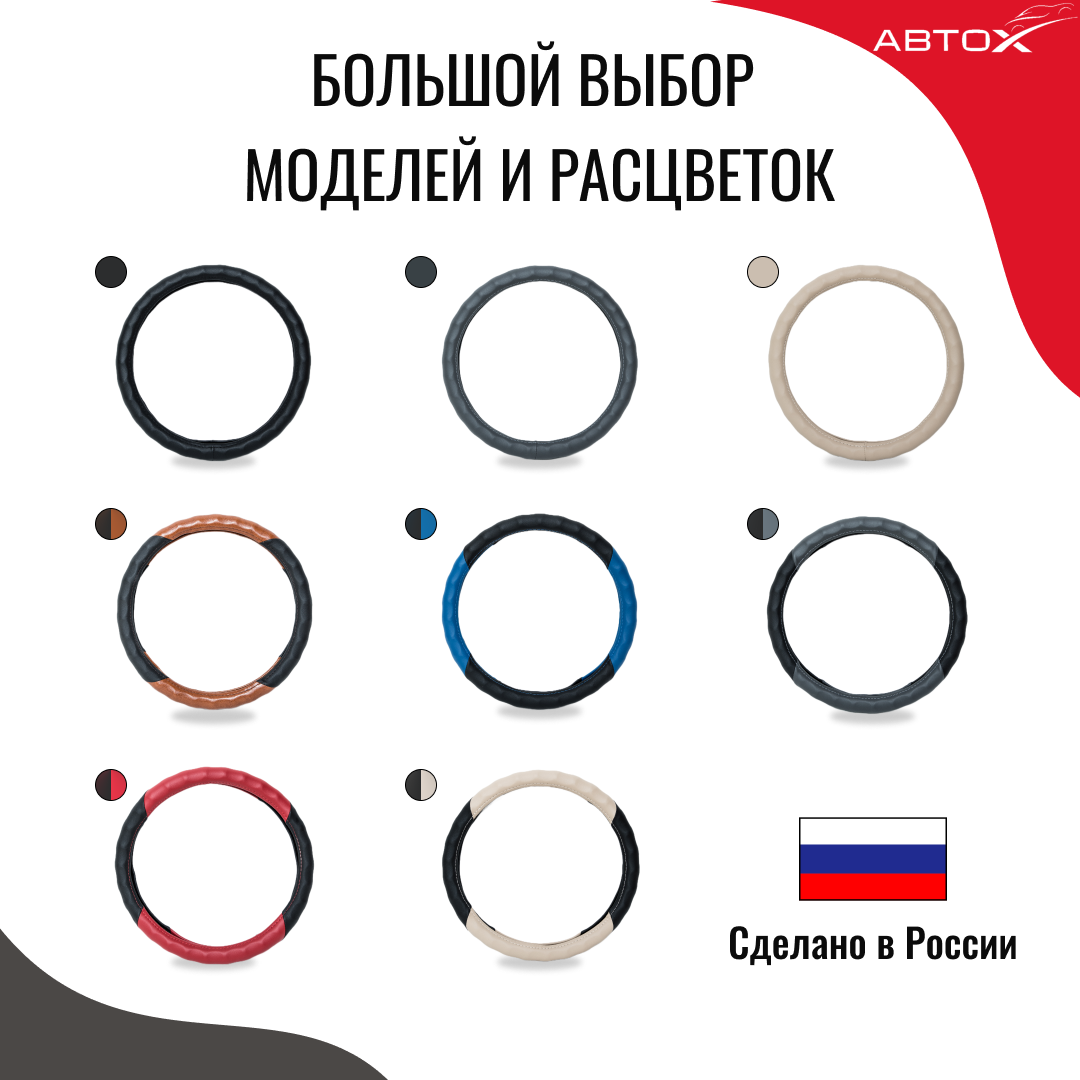Оплетка на руль с каркасом ЭКО кожа 37,38,39 см, размер М, серая. Чехол универсальный для руля. Покрытие на рулевое колесо. Аксессуары автох