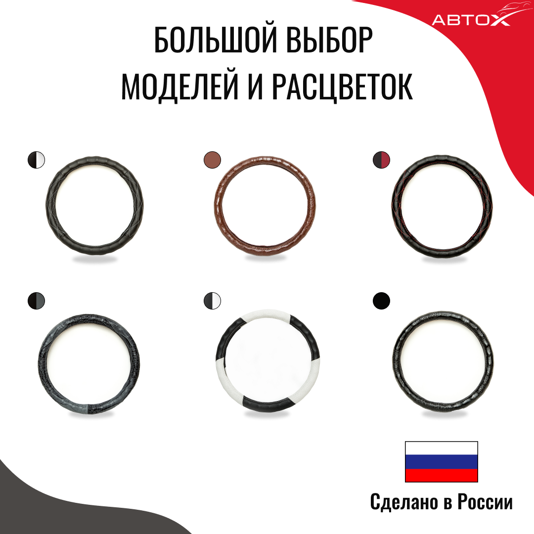 Оплетка на руль автомобиля с каркасом ЭКО кожа 37,38,39 см, размер М, черный крокодил. Чехол универсальный для руля. Покрытие на рулевое колесо. Автох