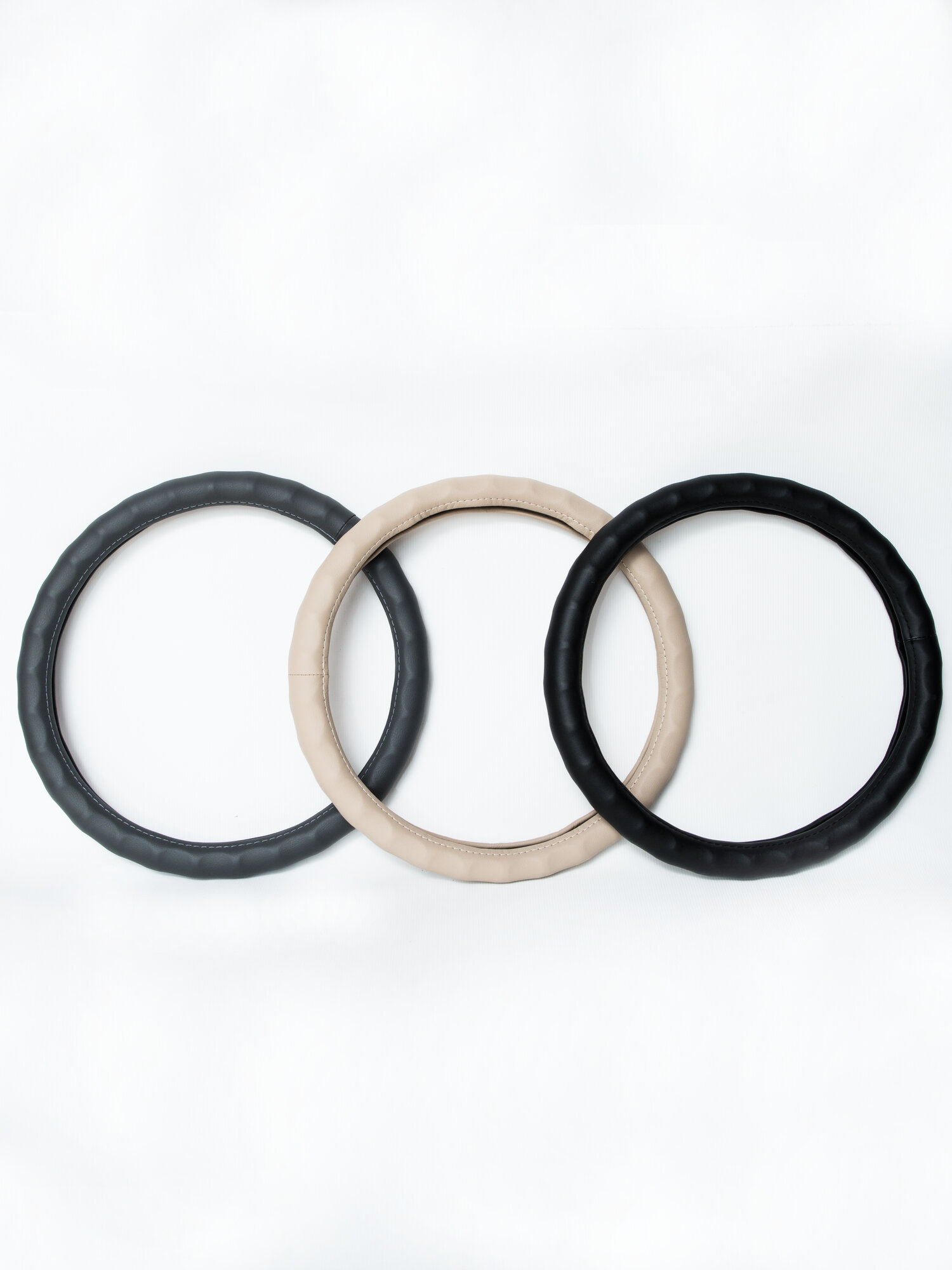Оплетка на руль автомобиля с каркасом ЭКО кожа 37,38,39 см, размер М, бежевая однотон. Чехол универсальный для руля. Покрытие на рулевое колесо. Автох