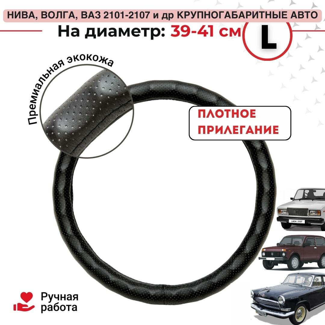 Купить Оплетка на руль автомобиля с каркасом 39,40,41 см, размер L, черная перфорация. Обшивка чехол универсальный для руля. Покрытие на рулевое колесо
