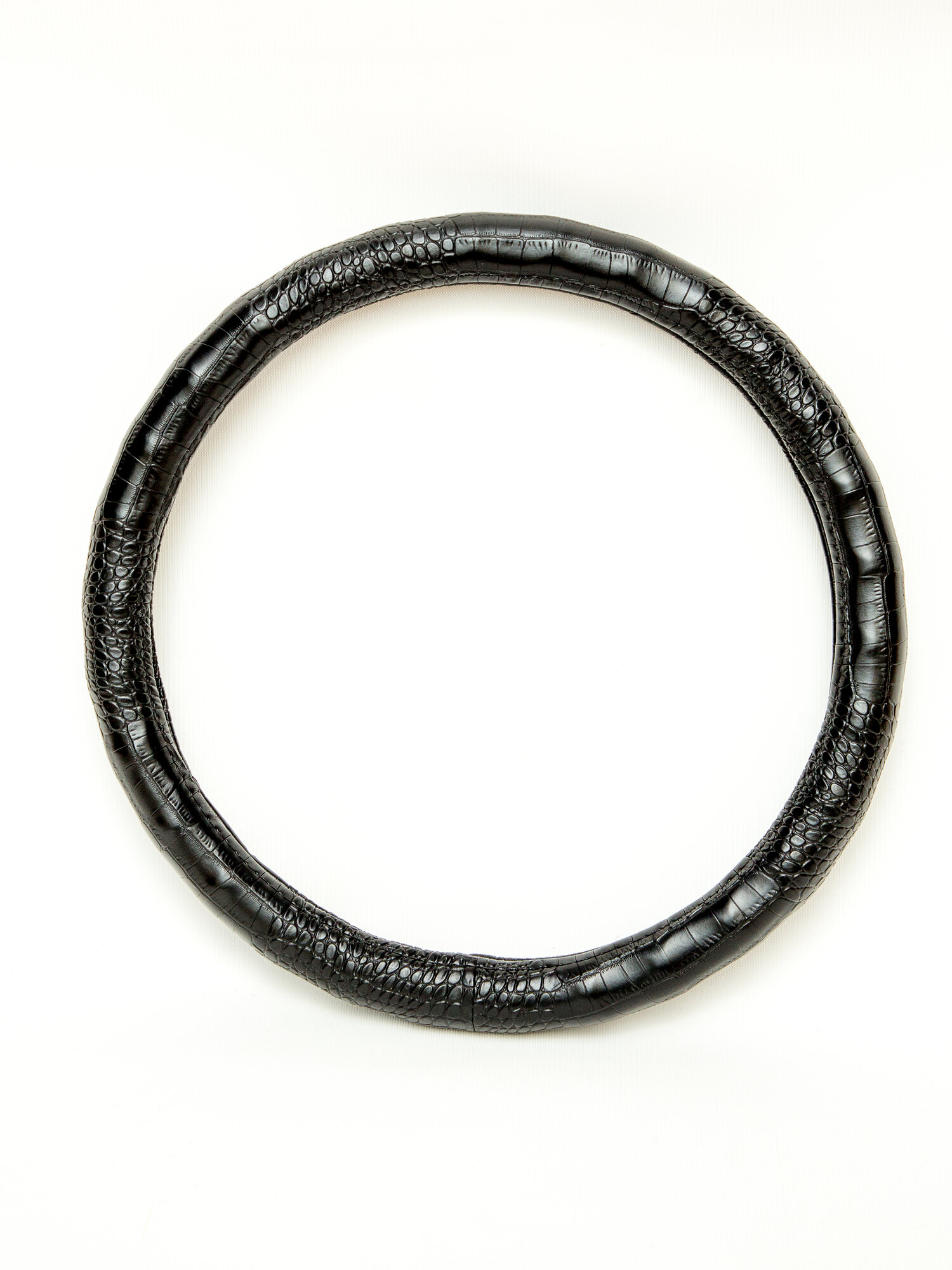 Купить Оплетка на руль автомобиля с каркасом ЭКО кожа 37,38,39 см, размер М, черный крокодил. Чехол универсальный для руля. Покрытие на рулевое колесо. Автох