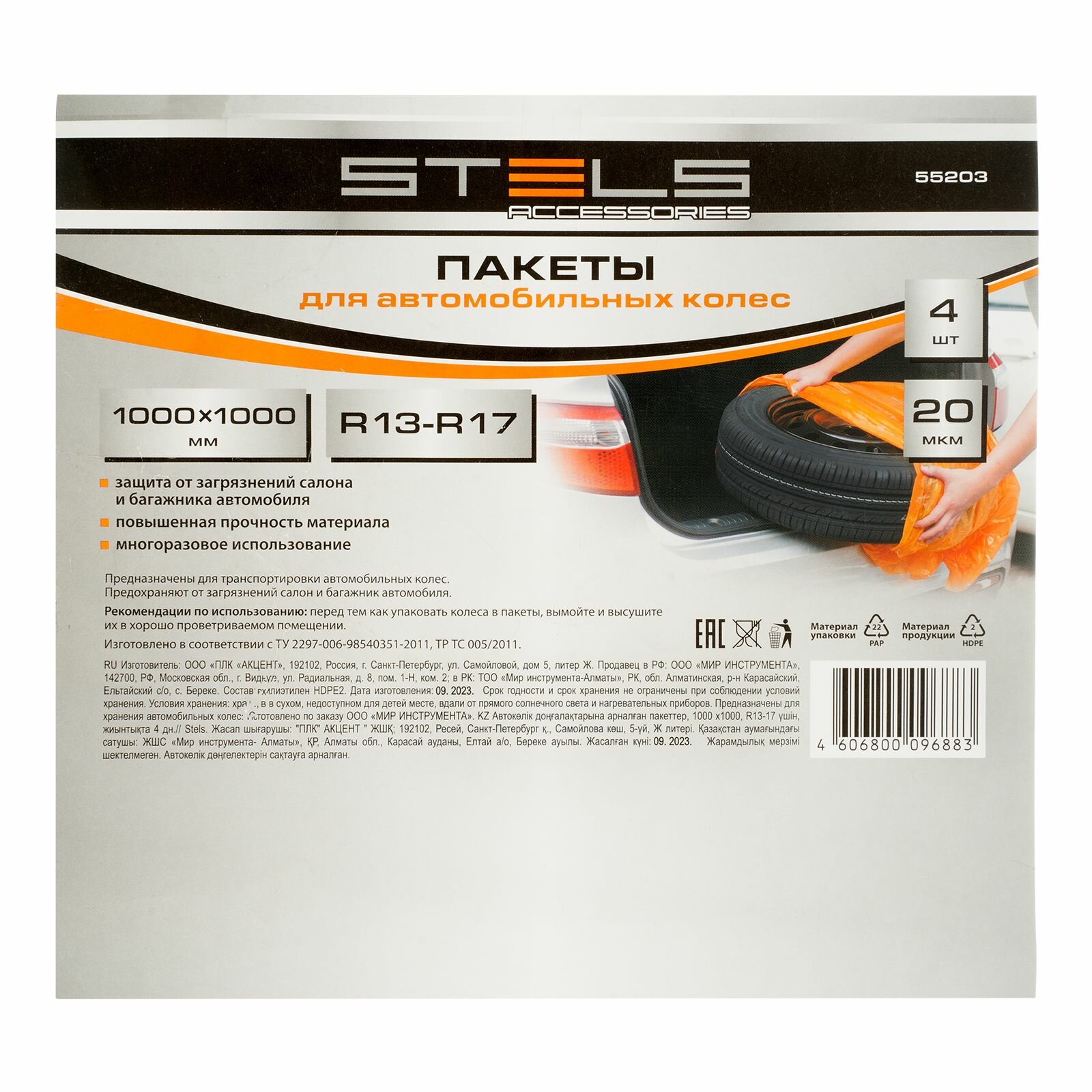 Купить Пакеты для автомобильных колес, 1000х1000 мм, для R13-17, 4 шт. в комплекте Stels