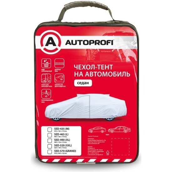 СохранитьТент-чехол для автомобиля, седан (570х203х122 см.) AUTOPROFI SED-570 (GRAND) интересное: