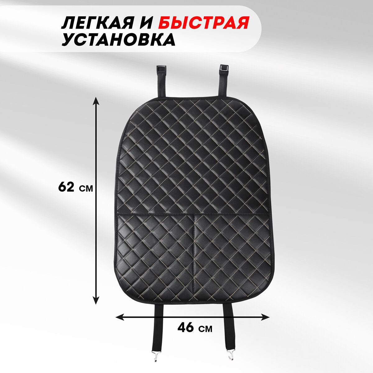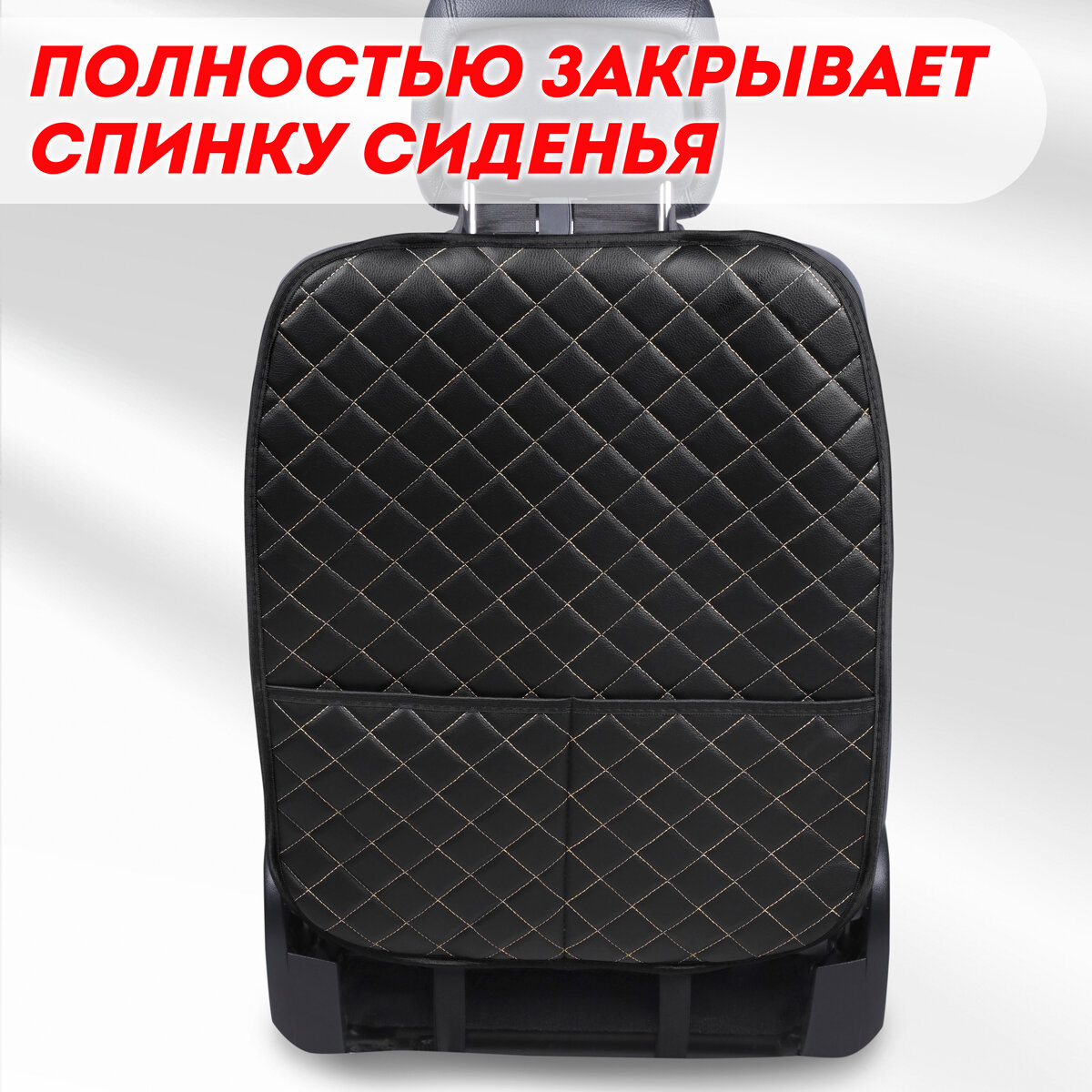 Защитная накидка на спинку сиденья. Защита от детских ног. Черный, бежевая строчка интересное:
