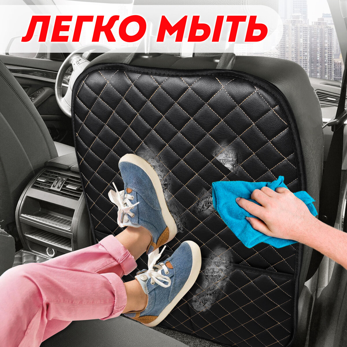 Ниже Вы можете прочитать отзывы на Защитная накидка на спинку сиденья. Защита от детских ног. Черный, бежевая строчка, ознакомится с подробными характеристиками, посмотреть интересные обзоры и фотографии на Защитная накидка на спинку сиденья. Защита от детских ног. Черный, бежевая строчка.