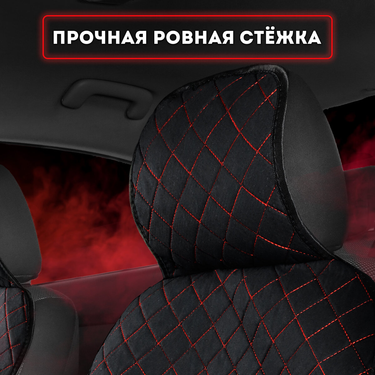 CarCape/ Накидки чехлы на передние сиденья автомобиля из льна 2 шт. Модель AMSTERDAM. Черный/красная строчка интересное: