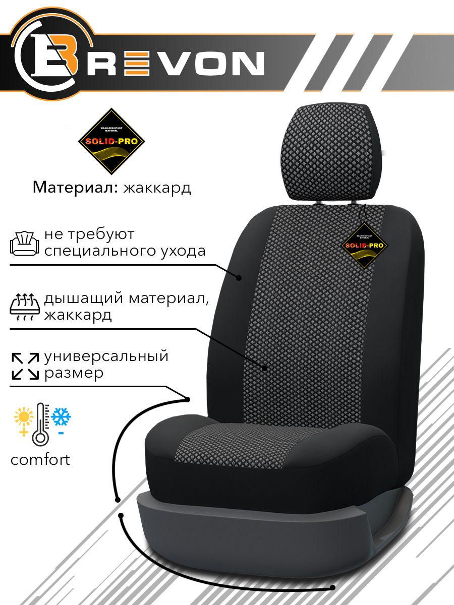 | Подробная комплектация | 2 чехлов подголовников, 2 чехла спинки кресла переднего ряда, 2 чехла кресла сидений переднего ряда |