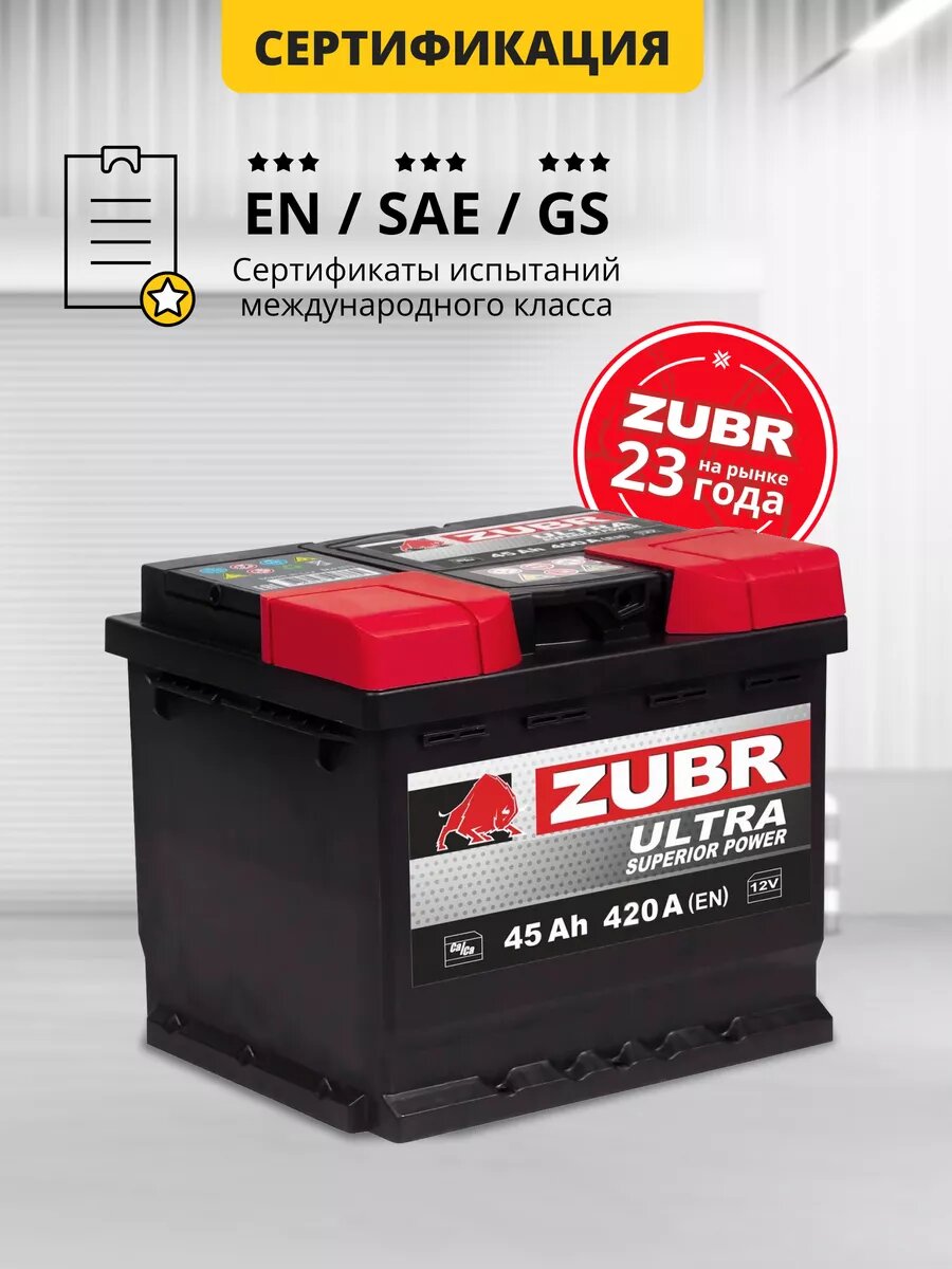 Аккумулятор автомобильный ZUBR Ultra 45 Ah 420 A обратная полярность 207x175x175 интересное: