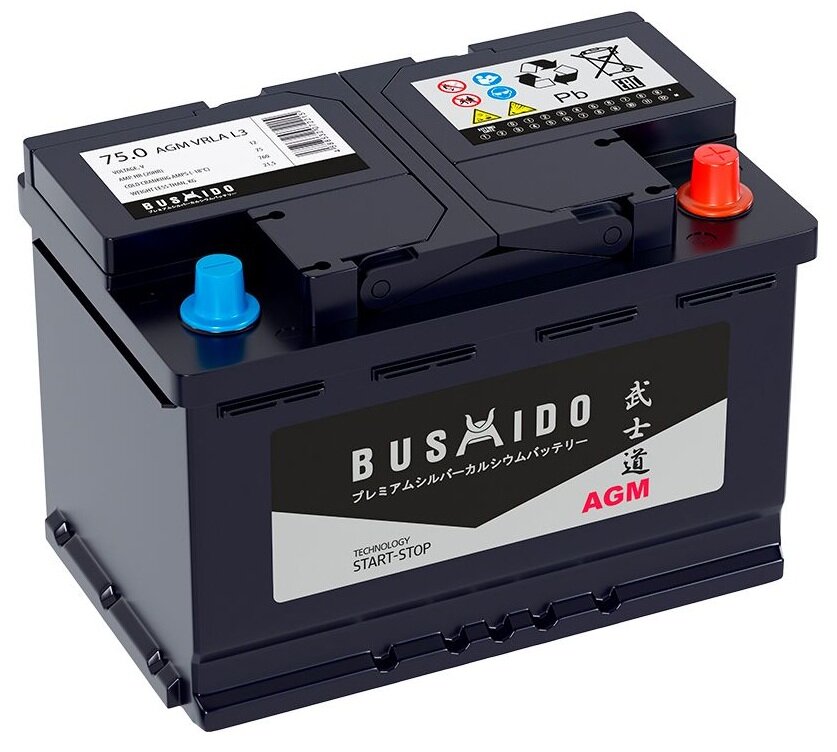 Купить Аккумулятор автомобильный BUSHIDO AGM 75 обр 760 A обратная полярность 278x175x190 мм