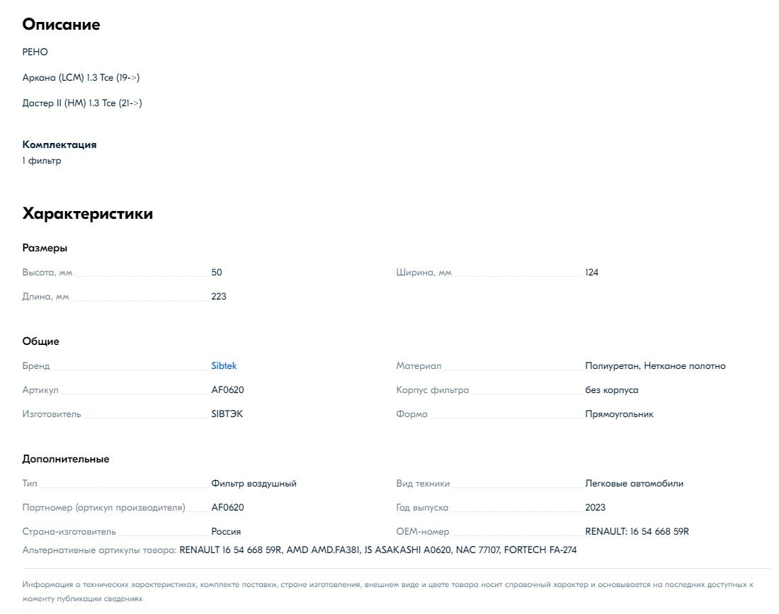 Фильтр воздушный Renault Arkana 1.3 Sibtek AF0620 интересное: