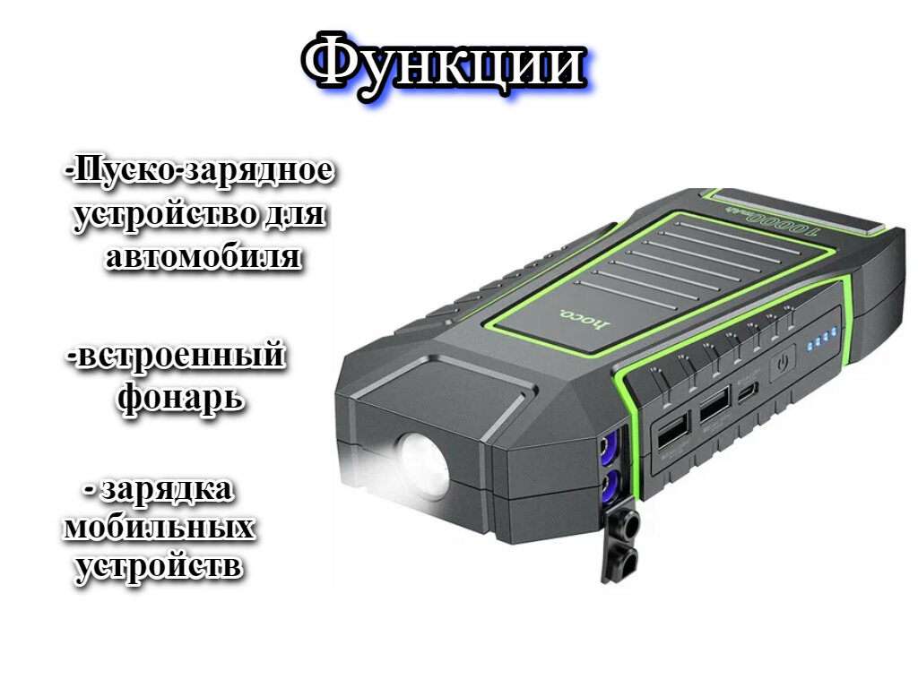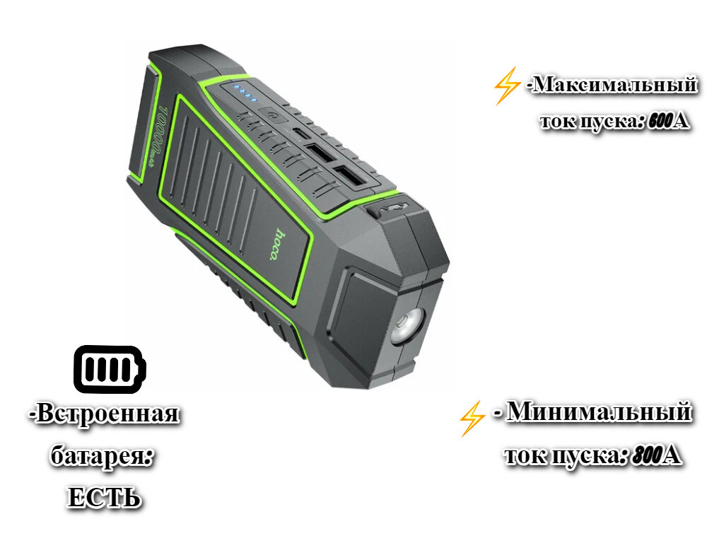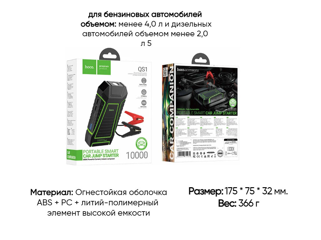 Пуско-зарядное устройство для автомобиля HOCO QS1 12B, 10000 mAh, черный интересное: