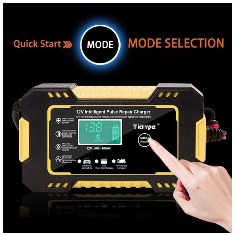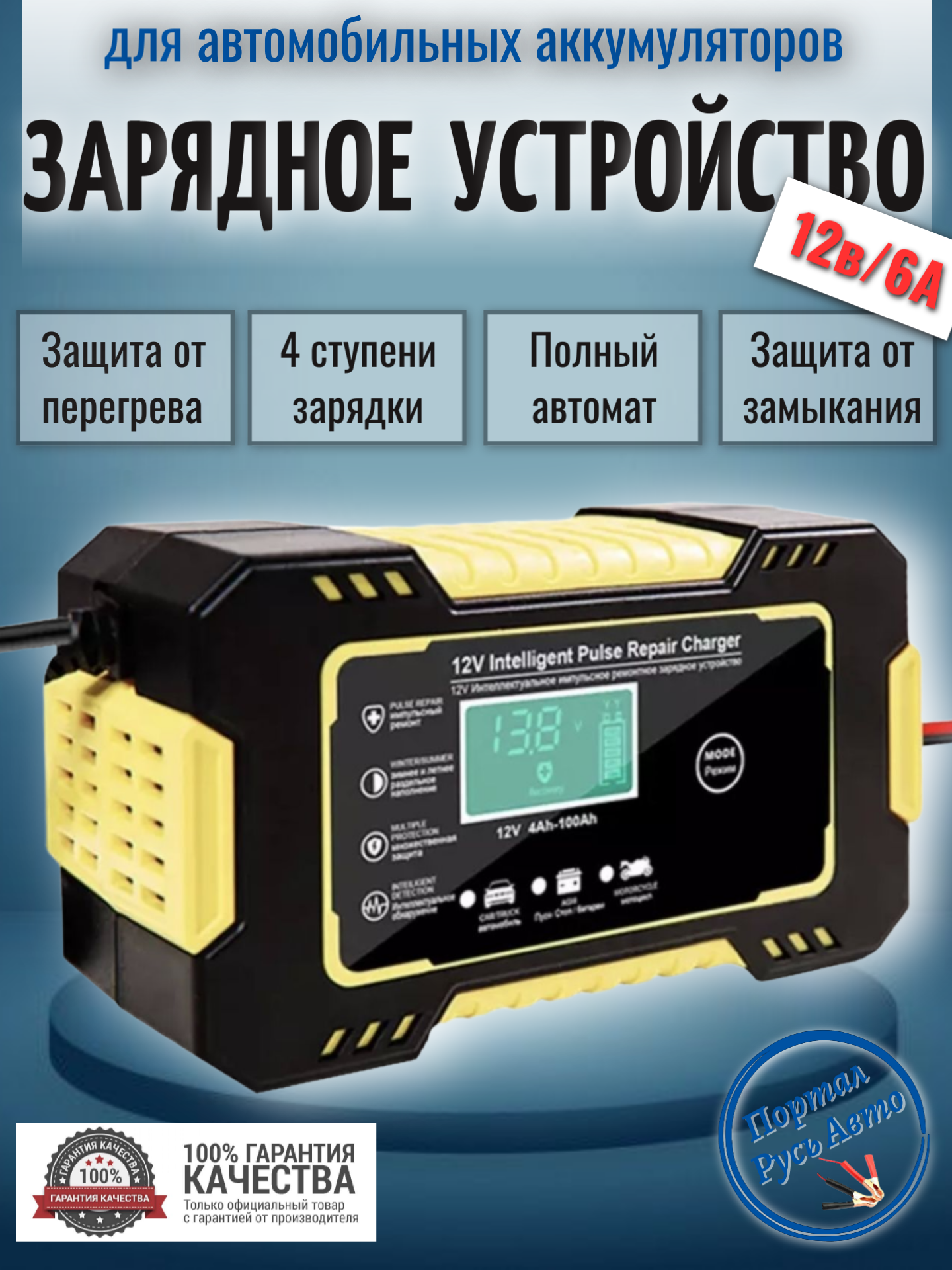 Купить Полностью автоматическое автомобильное зарядное устройство для аккумуляторов 12В 6A с сенсорным экраном и ЖК-дисплеем.