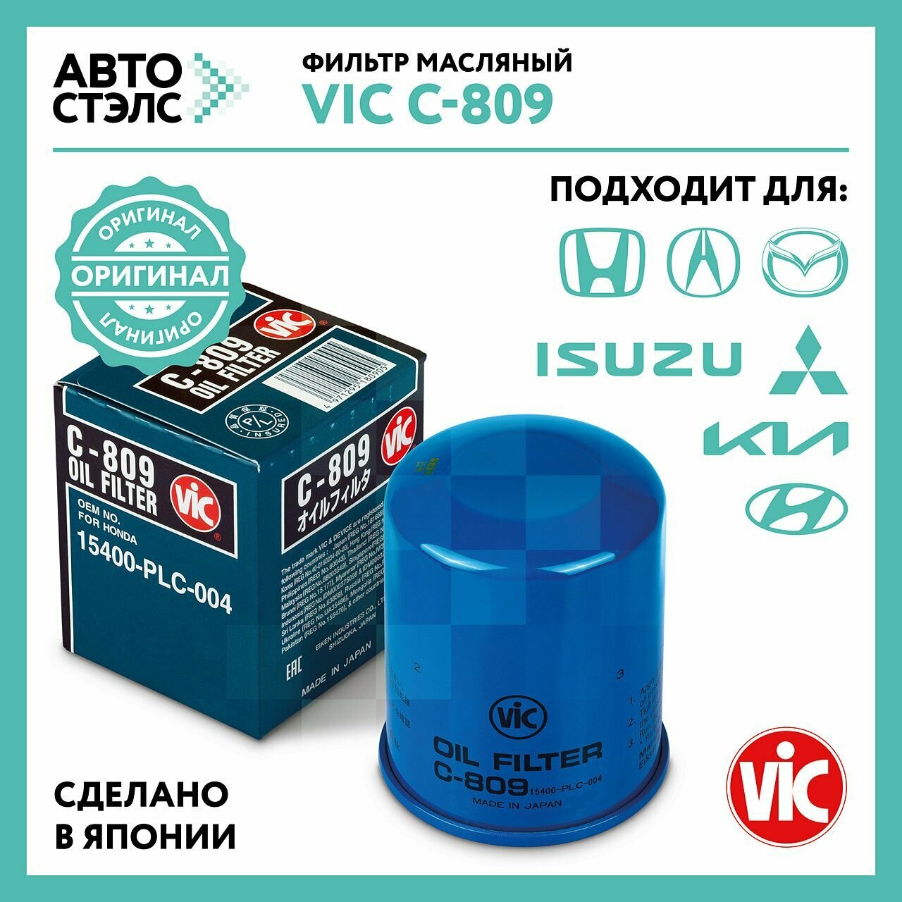 Фильтр масляный VIC C-809 HONDA ACURA HYUNDAI KIA MAZDA интересное: