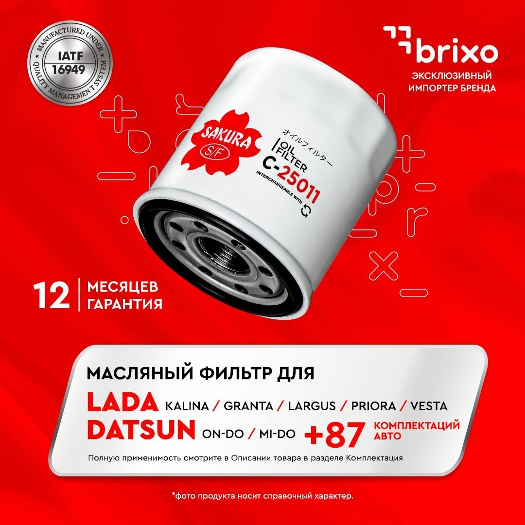 Масляный фильтр SAKURA C25011 для а/м ВАЗ 2108-2115, Kalina, Granta, Priora, Vesta, X-Ray, Datsun on-DO, mi-DO