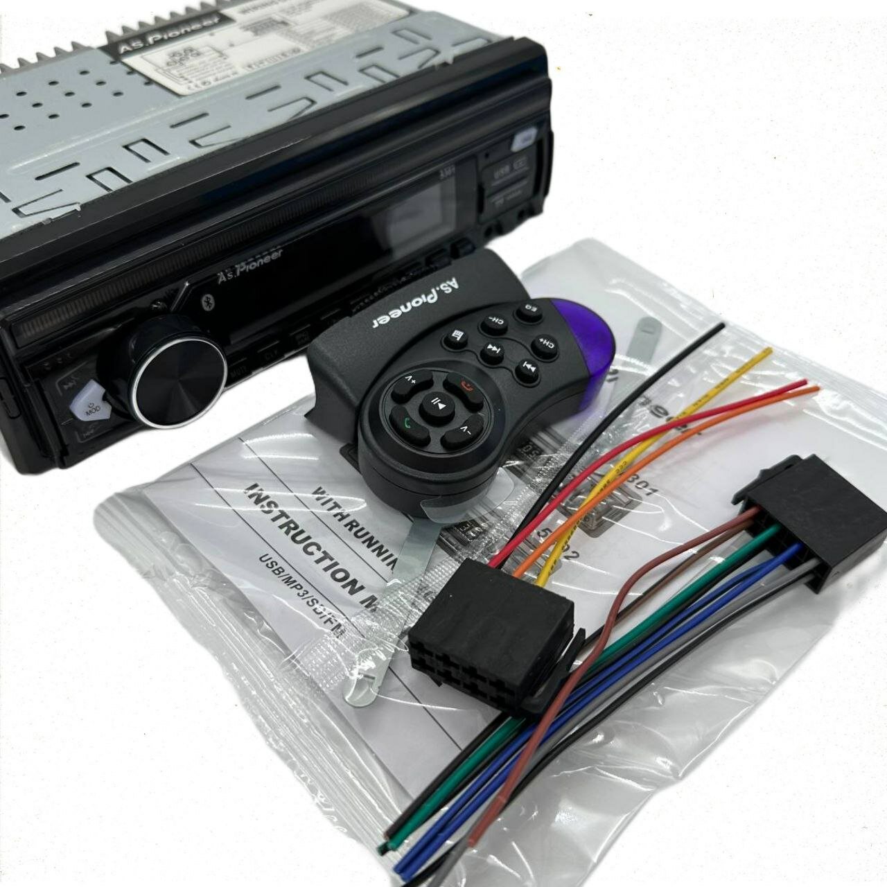 | Подробная комплектация | Автомагнитола, провода для подключения, ключи для демонтожа, пульт |