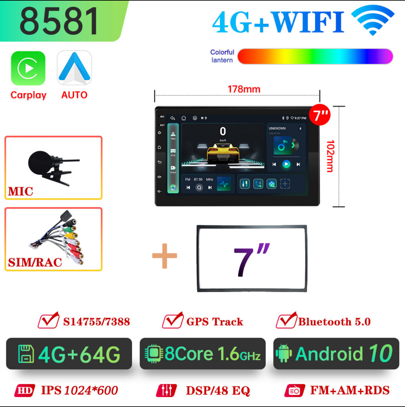 Купить Магнитола 2 Дин андроид 7 дюймов 4/64GB IPS DSP 4G CarPlay