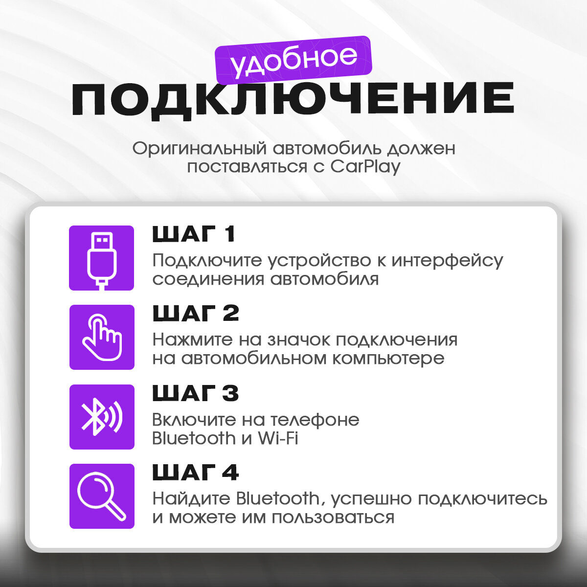 | Совместимость | Подходит для автомобилей с проводным CarPlay |