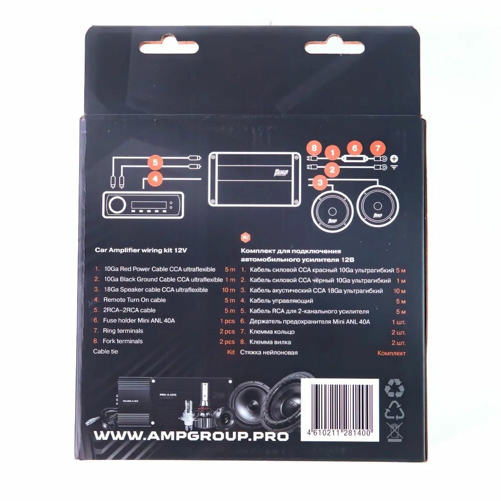 Комплект усилителя AMP MASS 2.60 с проводами для установки интересное: