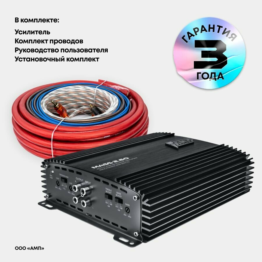 Ниже Вы можете прочитать отзывы на Комплект усилителя AMP MASS 2.60 с проводами для установки, ознакомится с подробными характеристиками, посмотреть интересные обзоры и фотографии на Комплект усилителя AMP MASS 2.60 с проводами для установки.